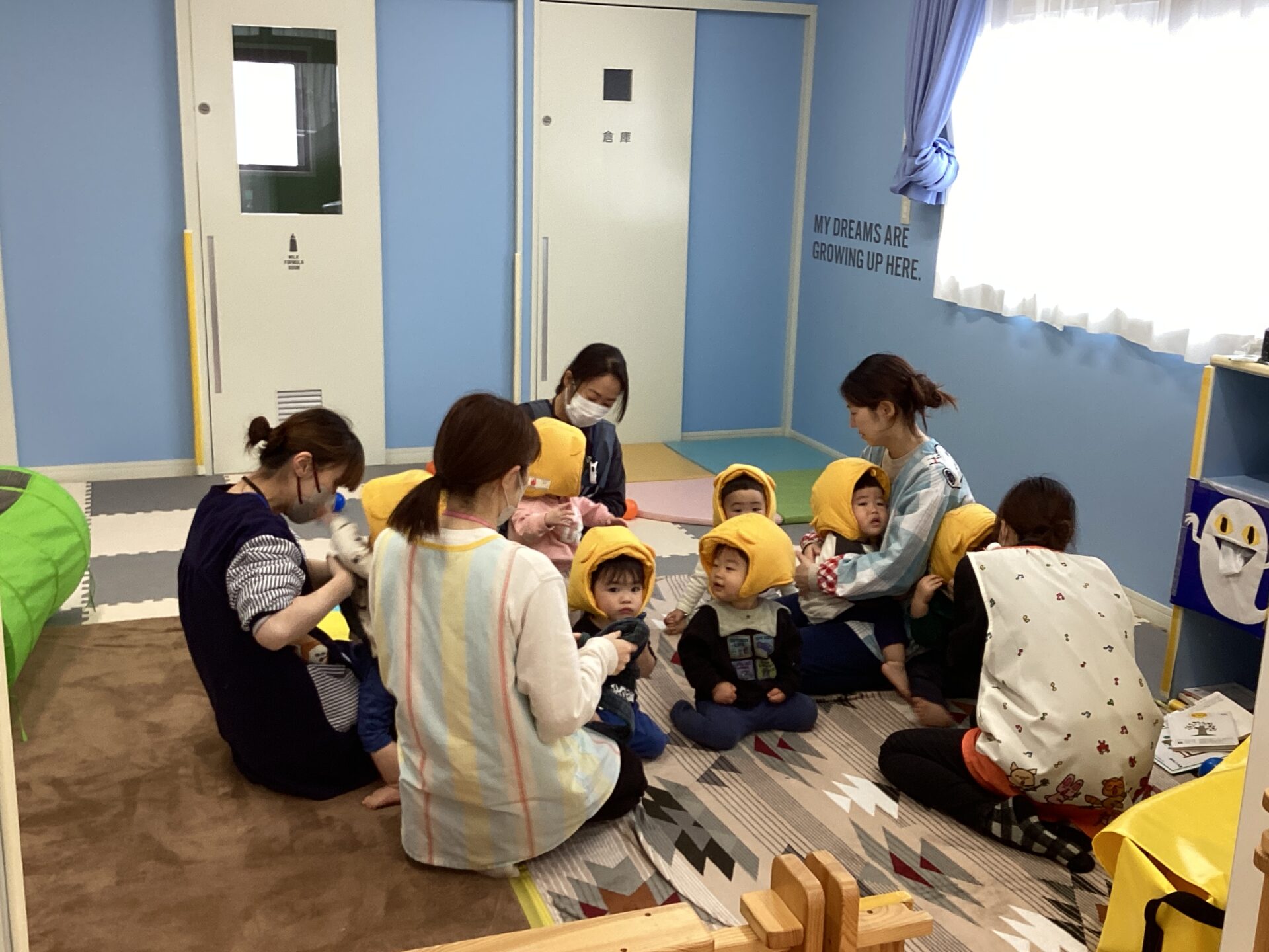 新クラスになり、初めての避難訓練ということで、未満児(0.1.2歳児)クラスでは避難カートに乗る練習や、保育者間の連携や協力体制について各クラスで確認もおこないました。