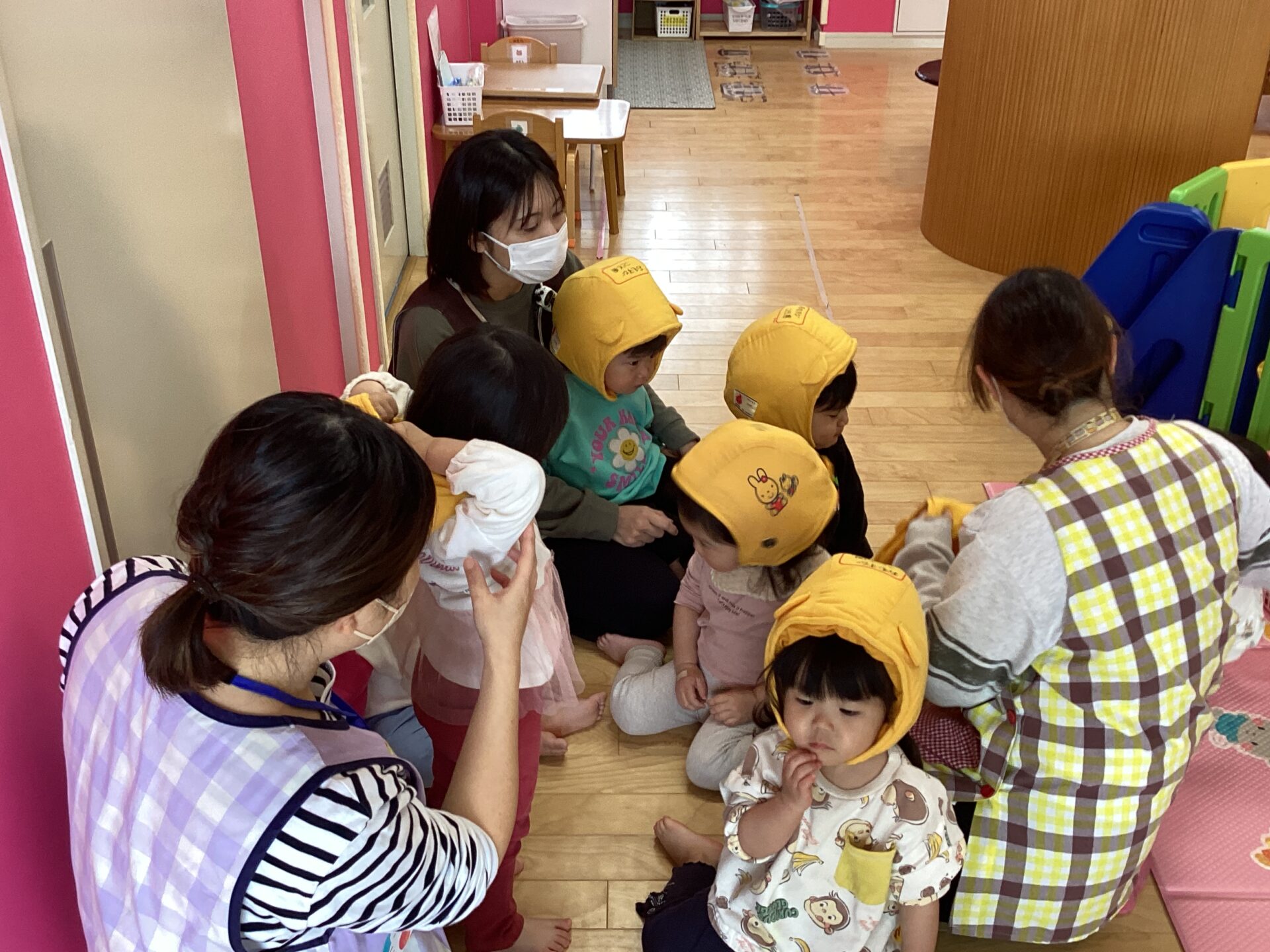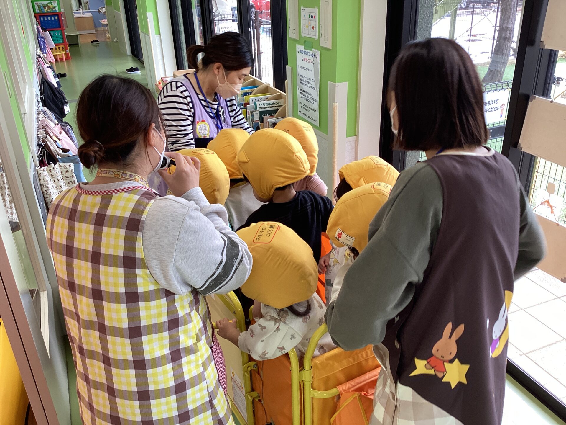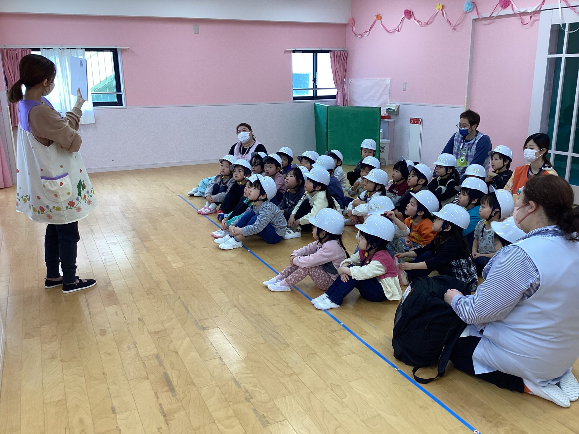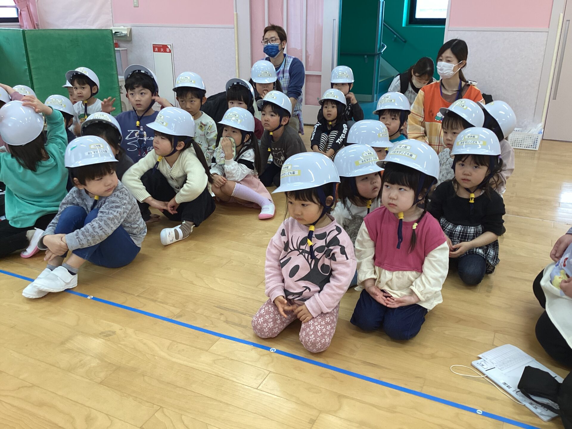 防災頭巾はまだまだ慣れない様子のお友だちもいましたが、これから1年間様々な想定の訓練を通して、少しずつ慣れていけたらと思います☺️