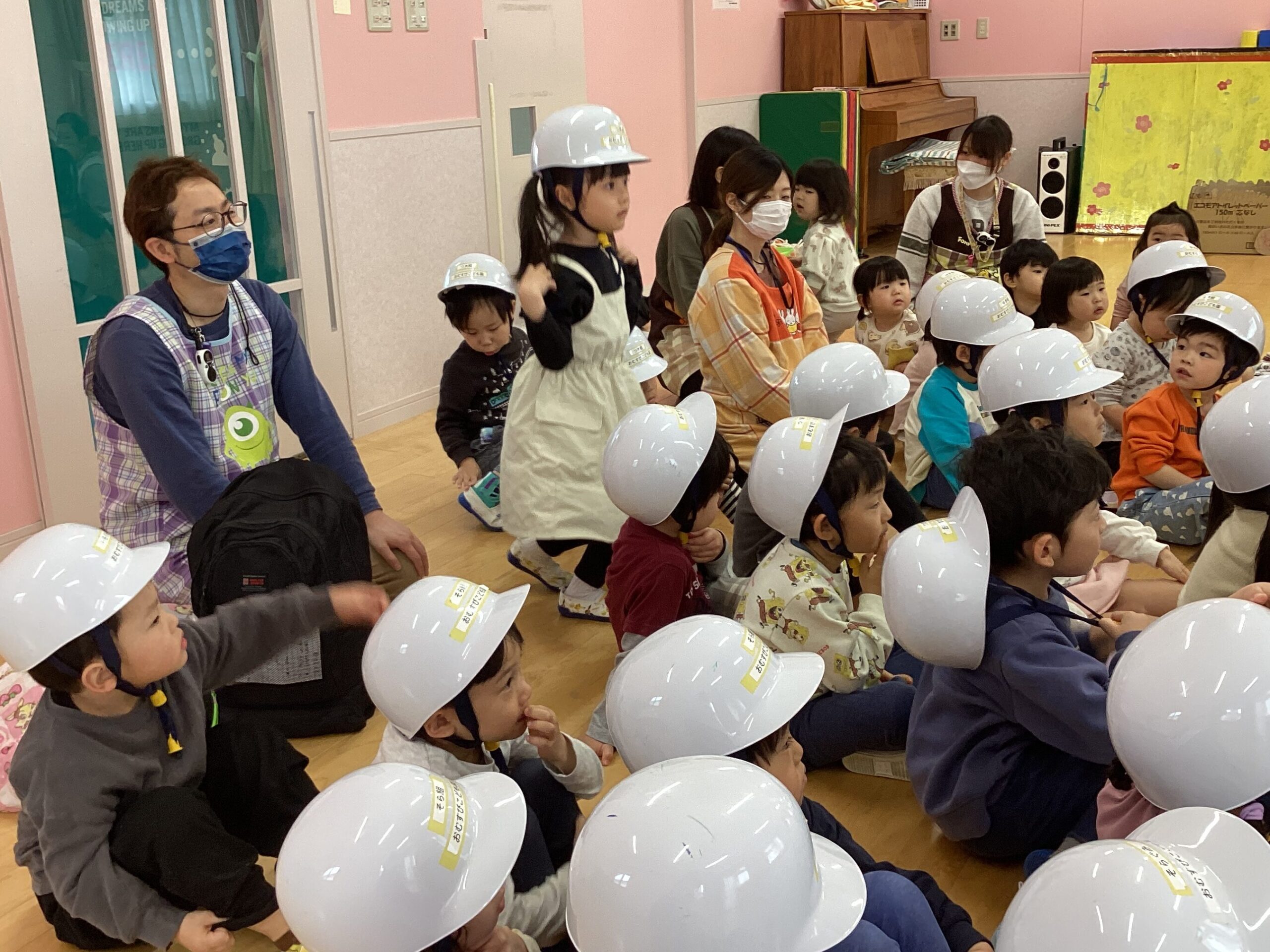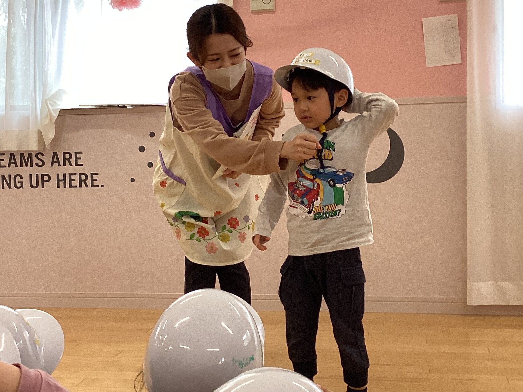 ゆきぐみ(3歳児)のお友だちは初めて被ったヘルメット⛑️