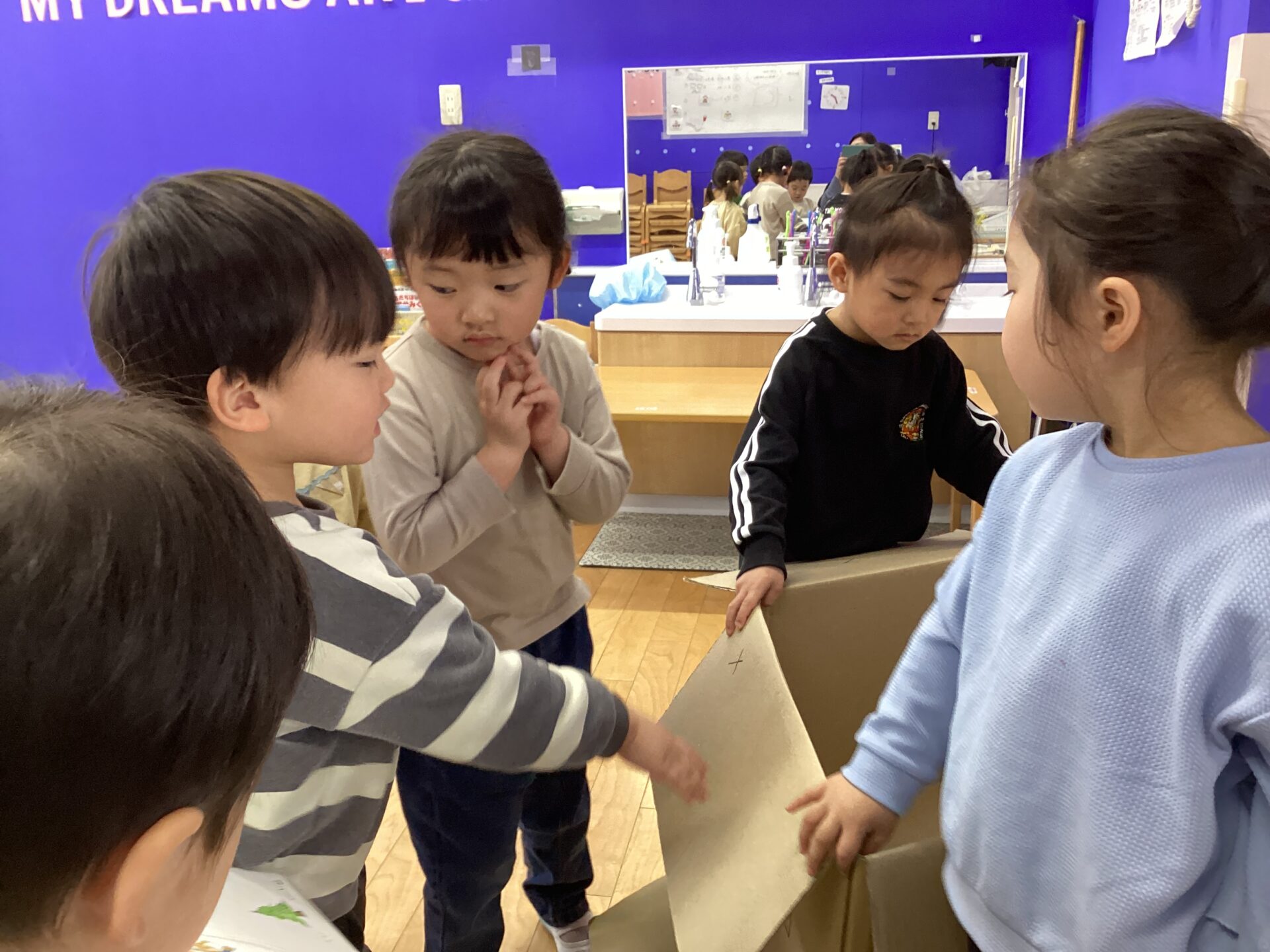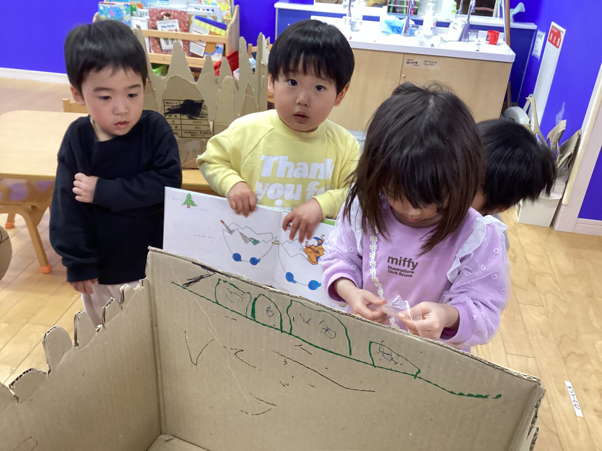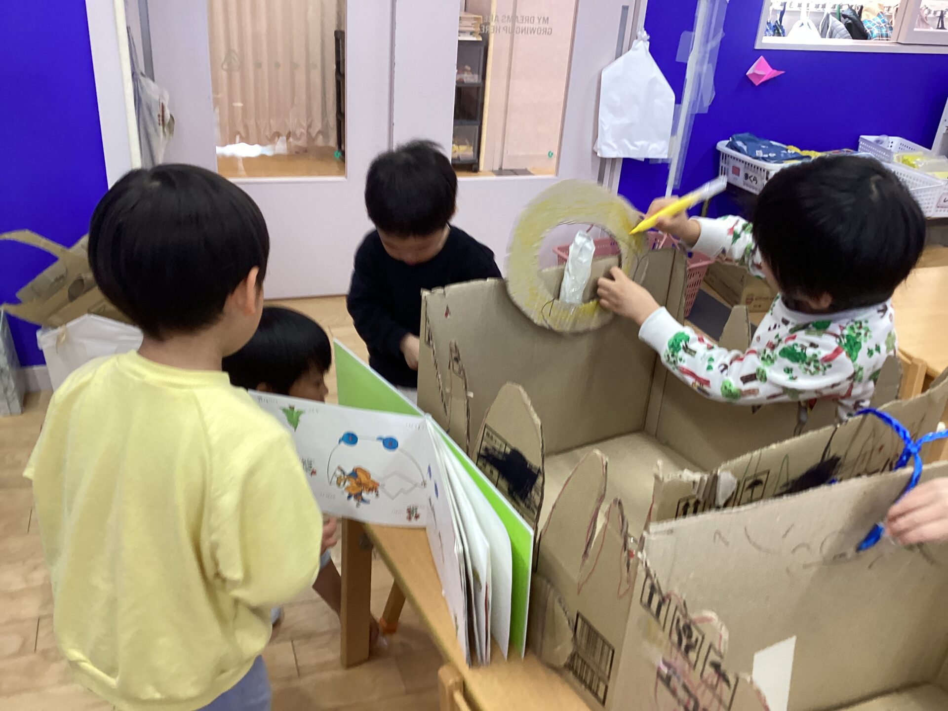 絵本を見た次の日の朝、「いつ作るの❓いつ作るの❓」とお部屋に入ってくるなりワクワクした表情で聞いてくる子ども達でした。何が必要なのかどんなイメージなのか分からなかったので聞いて見ると、、、。