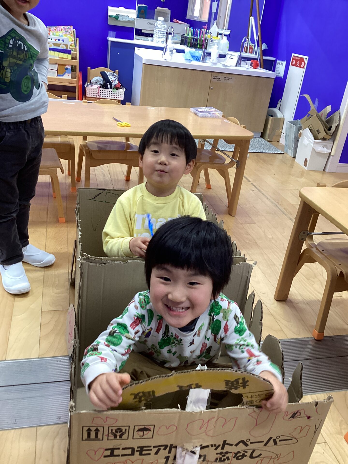 ダンボール📦を探し、お部屋に置いて置くと「これ使っていいの❓」と聞いてくるA君。