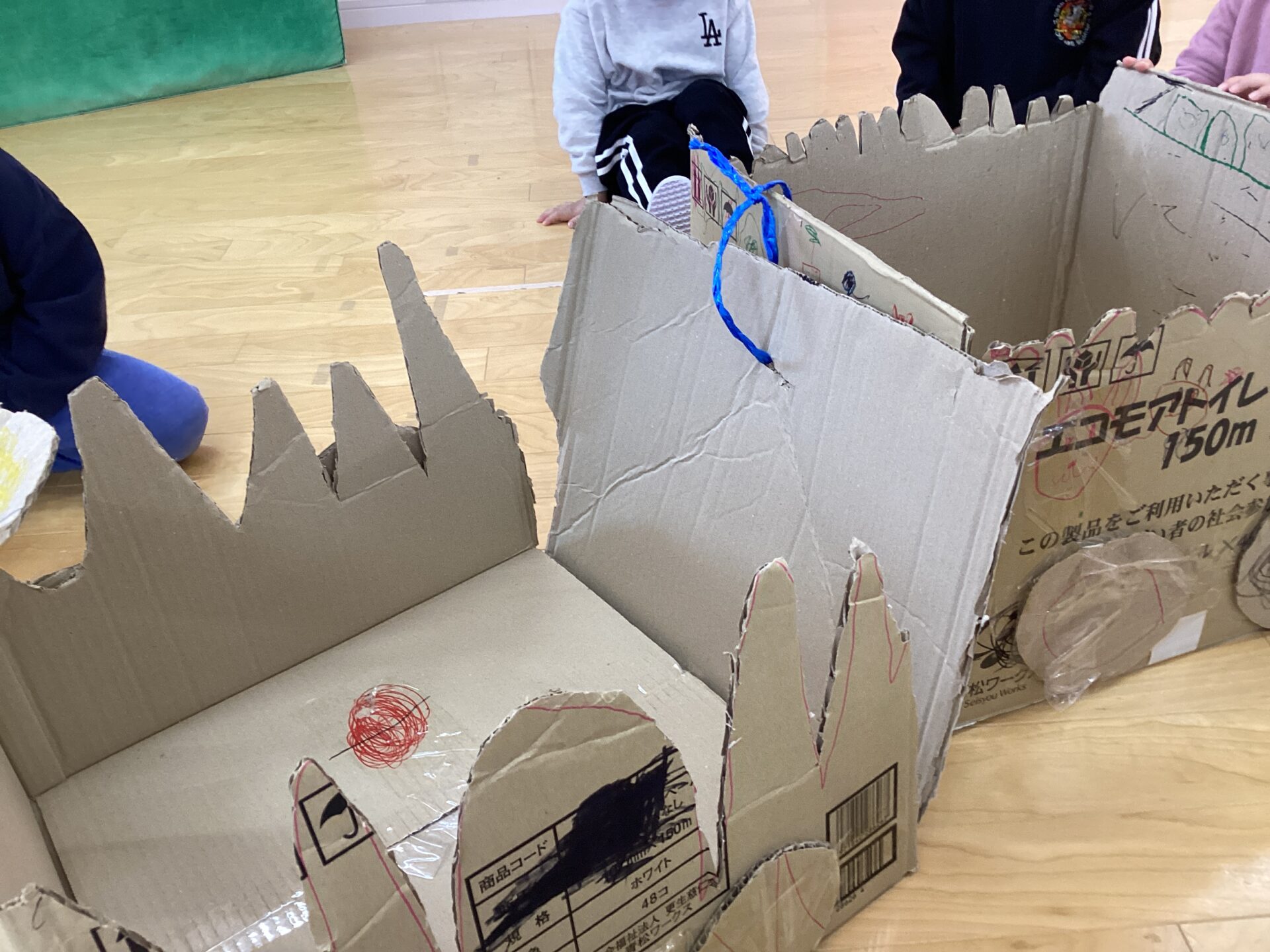 子ども達が、ギザギザの線を描いてくれたのでその通りにきるとこんな感じになりましたよ😆