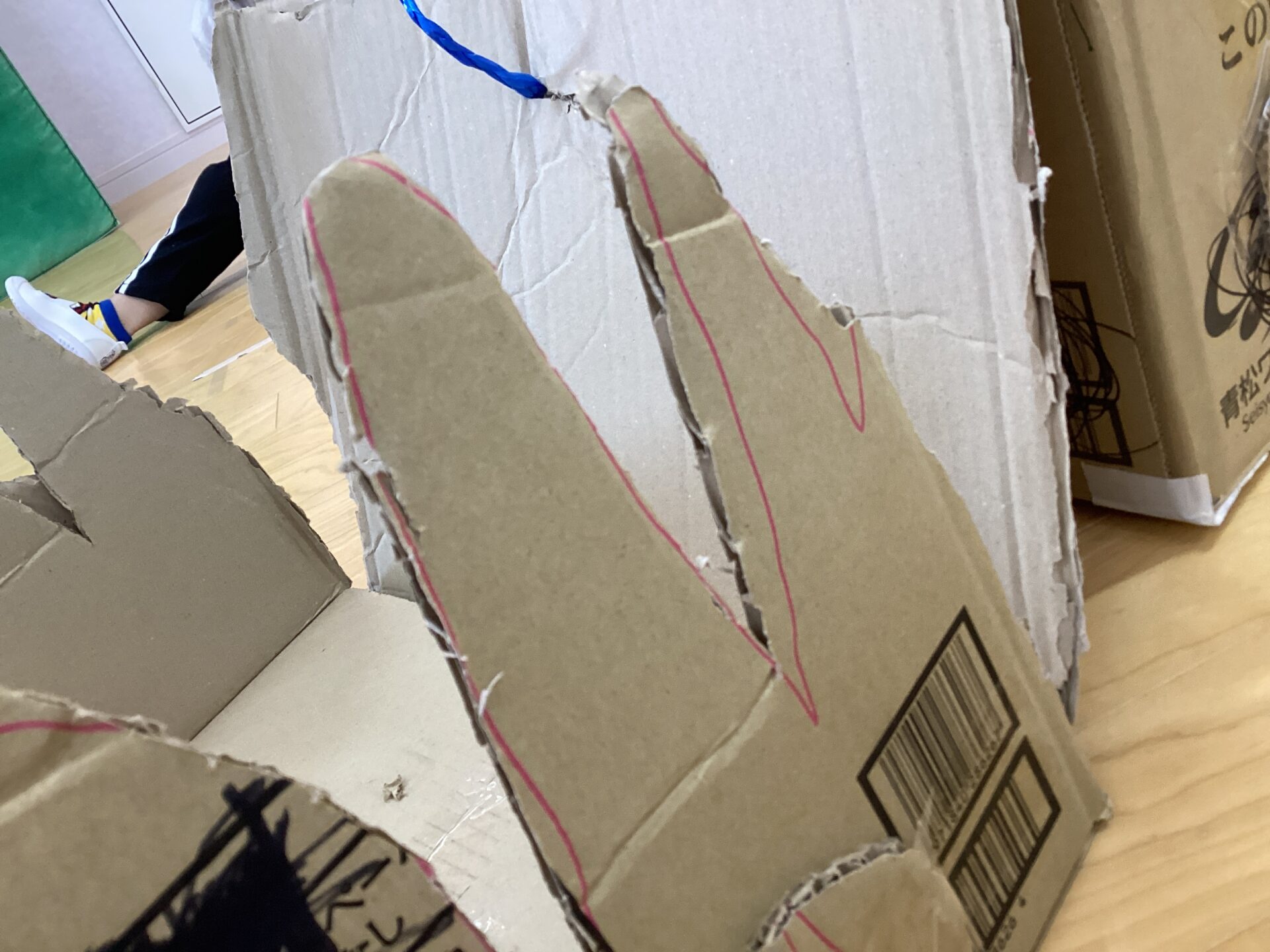 この段ボールをどうやって卵🥚の形にしようかなと考えていると、