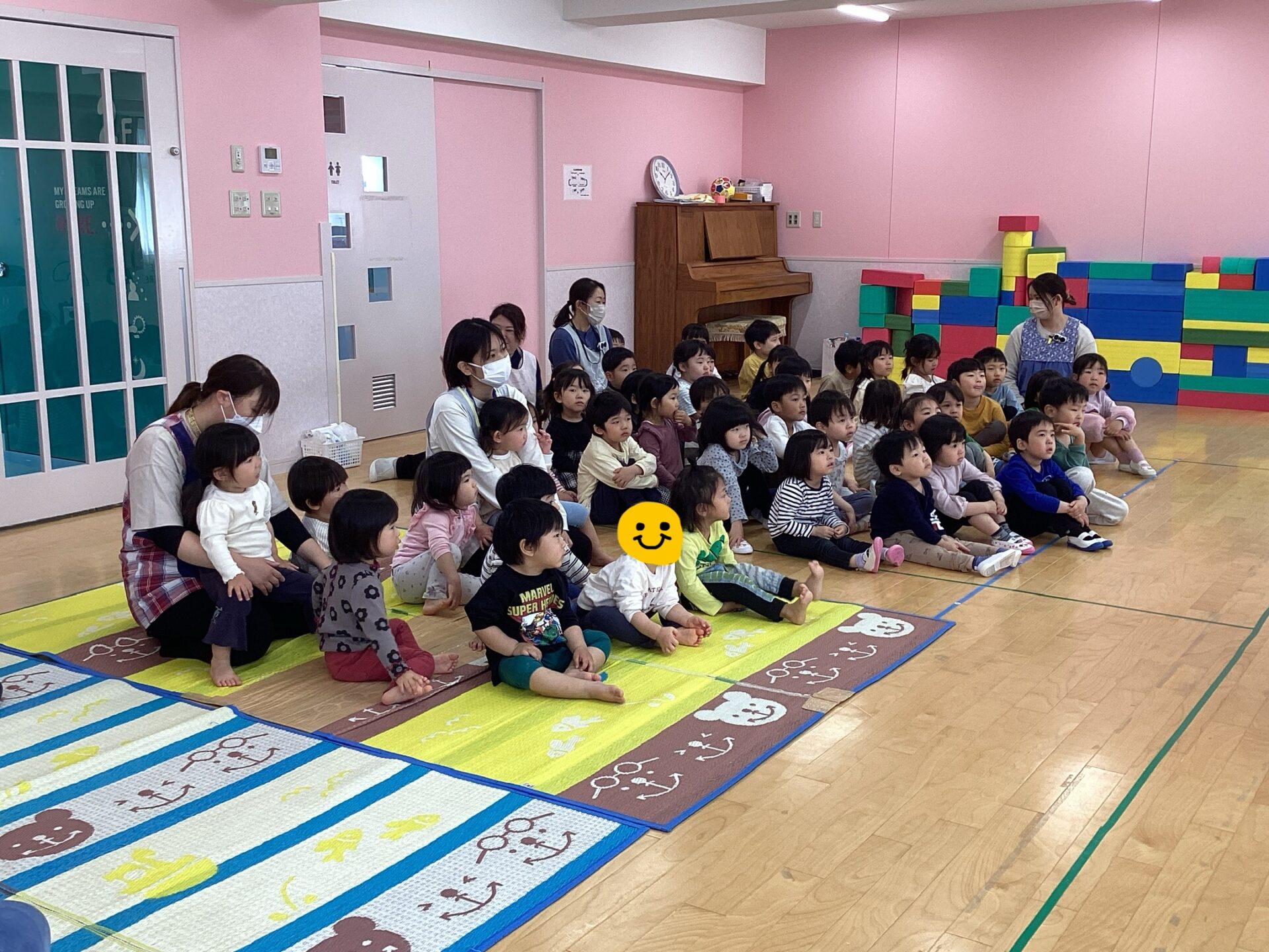 集会の後、以上児の子ども達から「ママから離れないといいんだよね」「手をつなげばいいんだよ」なんて声も聞こえました。しっかりと学び、身を守る気持ちが高まったようで、頼もしく感じました。