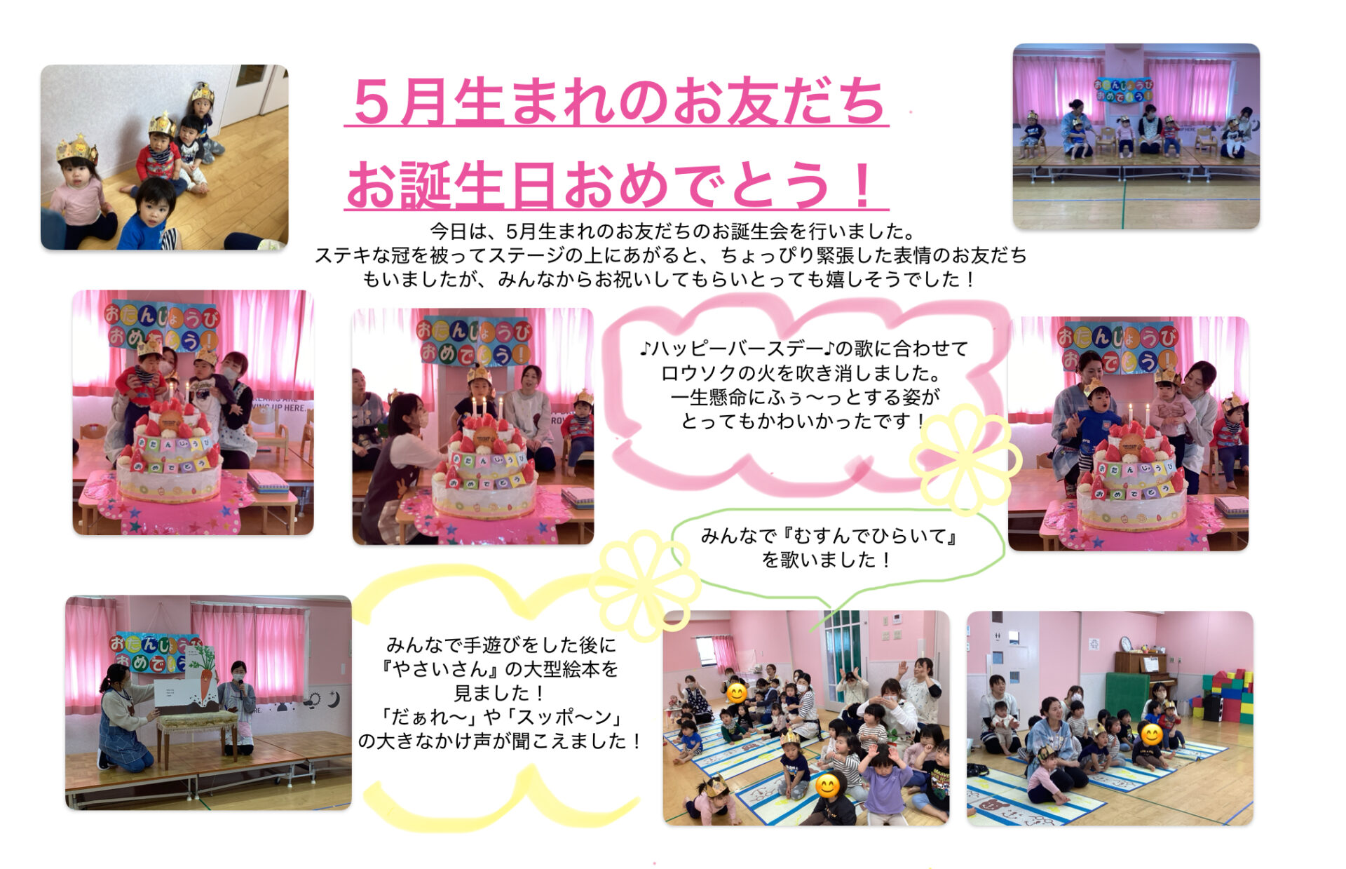 すこし緊張はあるものの、堂々とインタビューに答えていました。お誕生児さんのうれしそうな表情に保育者の頬もゆるみます💛