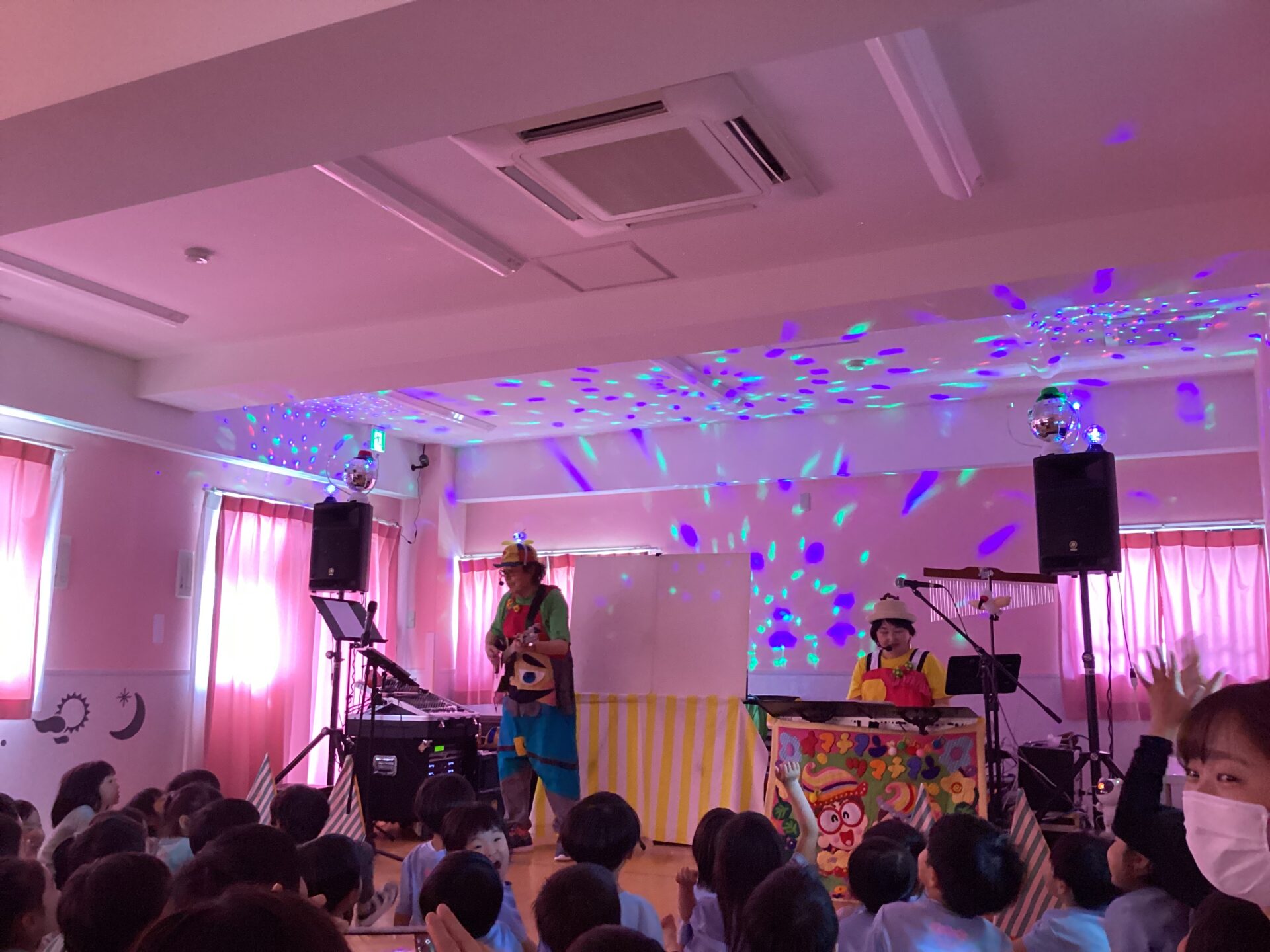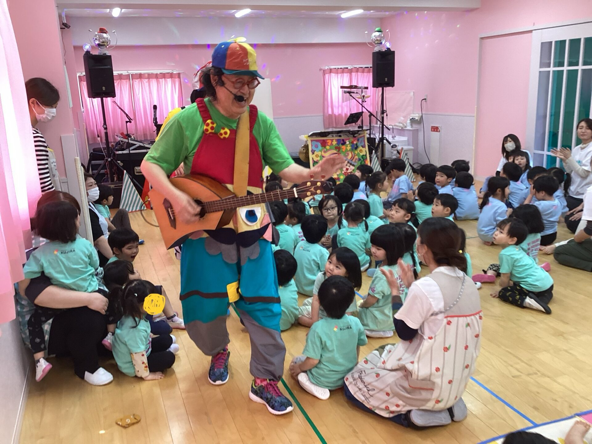 当日は朝から保育室を周ったり、準備体操をしたり、音出しをしたりと、始まるまで入念に準備をしてくださっていましたよ!