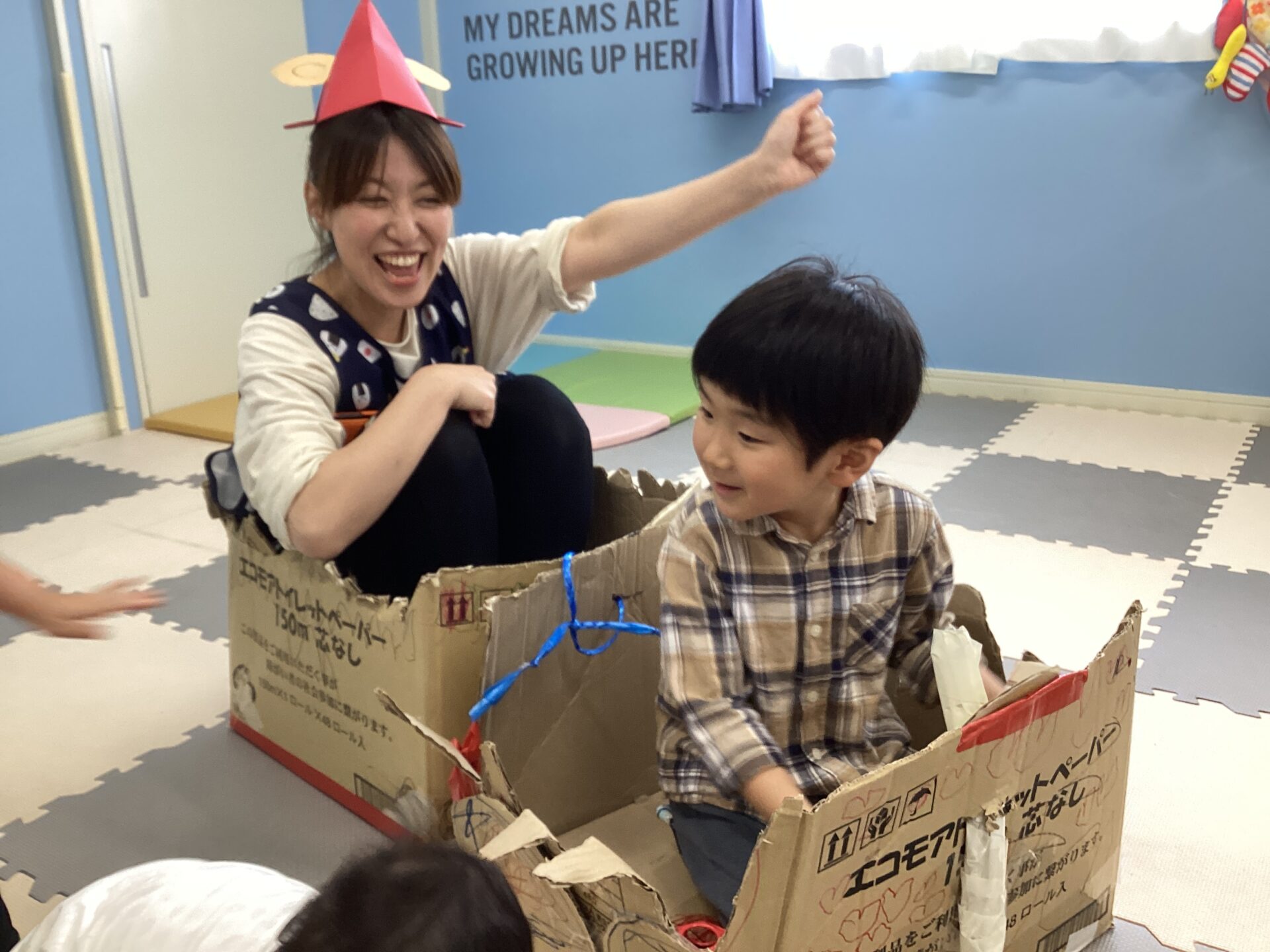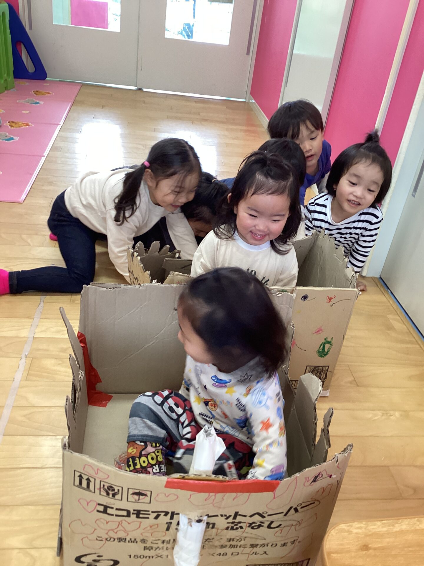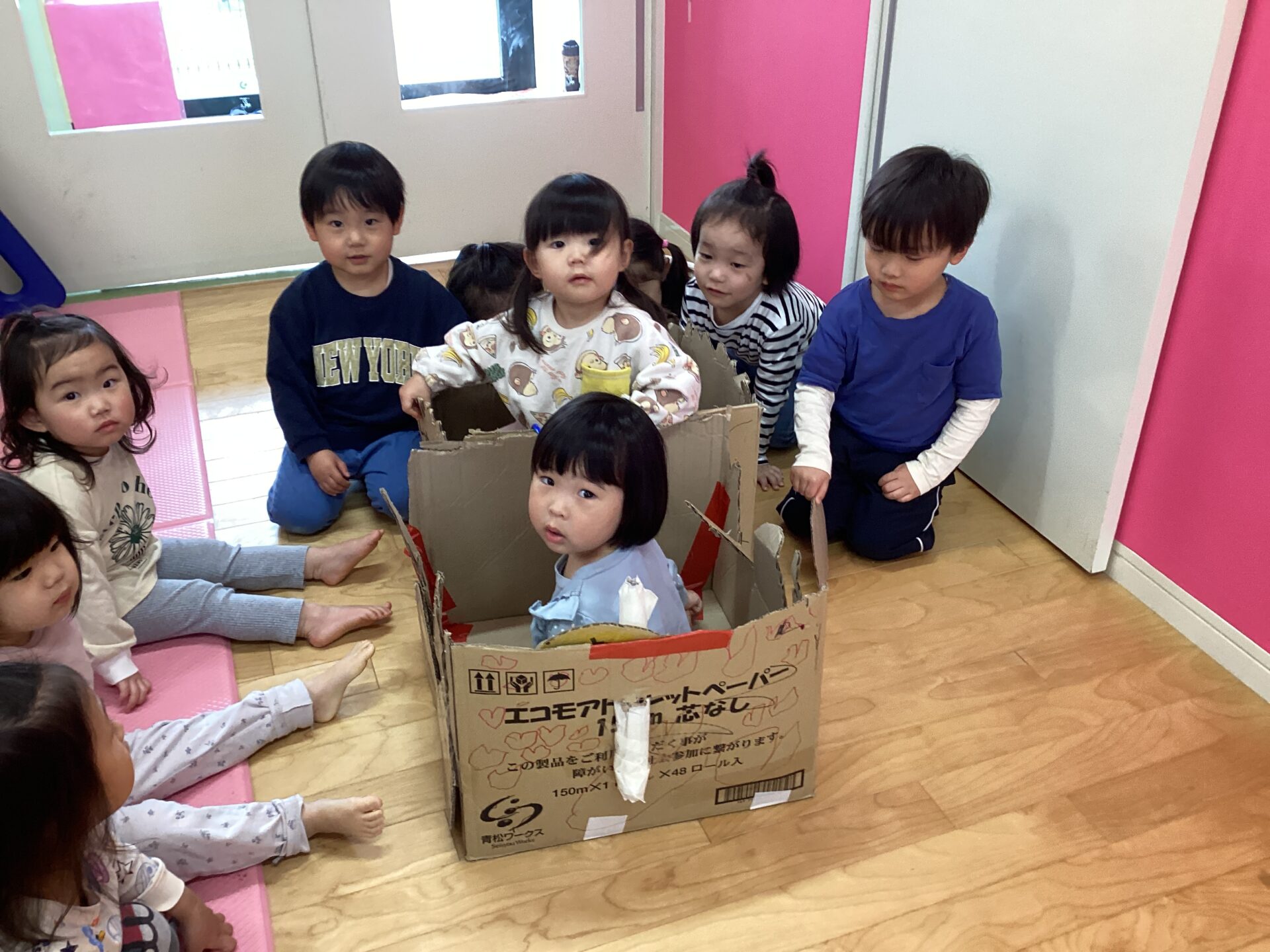 この時のそら組さんのお友だちは、にじ組さんを車に乗せて動かしてあげたいと張り切ってお部屋へ向かいました💪✨