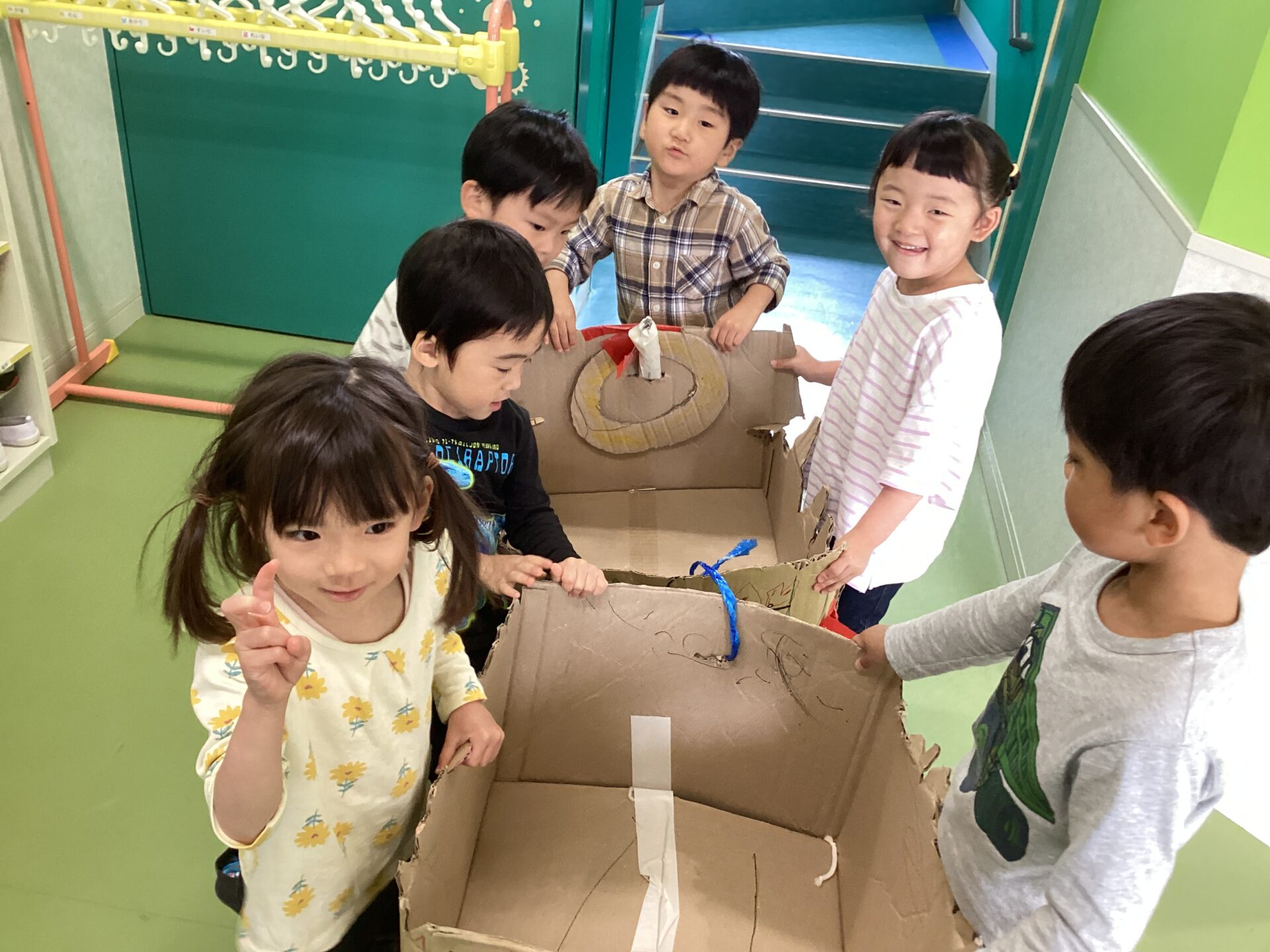 ある日、「赤ちゃんも乗せてあげたら喜ぶよね❓」「きょうこ先生(3歳児の時の担任)にも見せたいな✨」「うみ組さん(1歳児)も乗りたいかも‼️」そんな声が聞こえてきました。