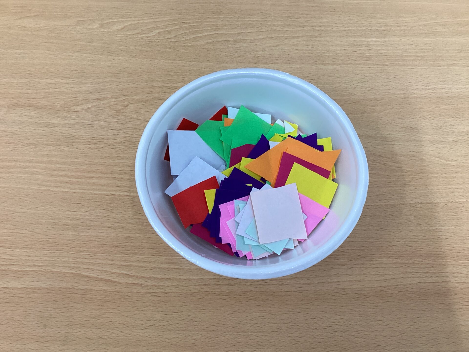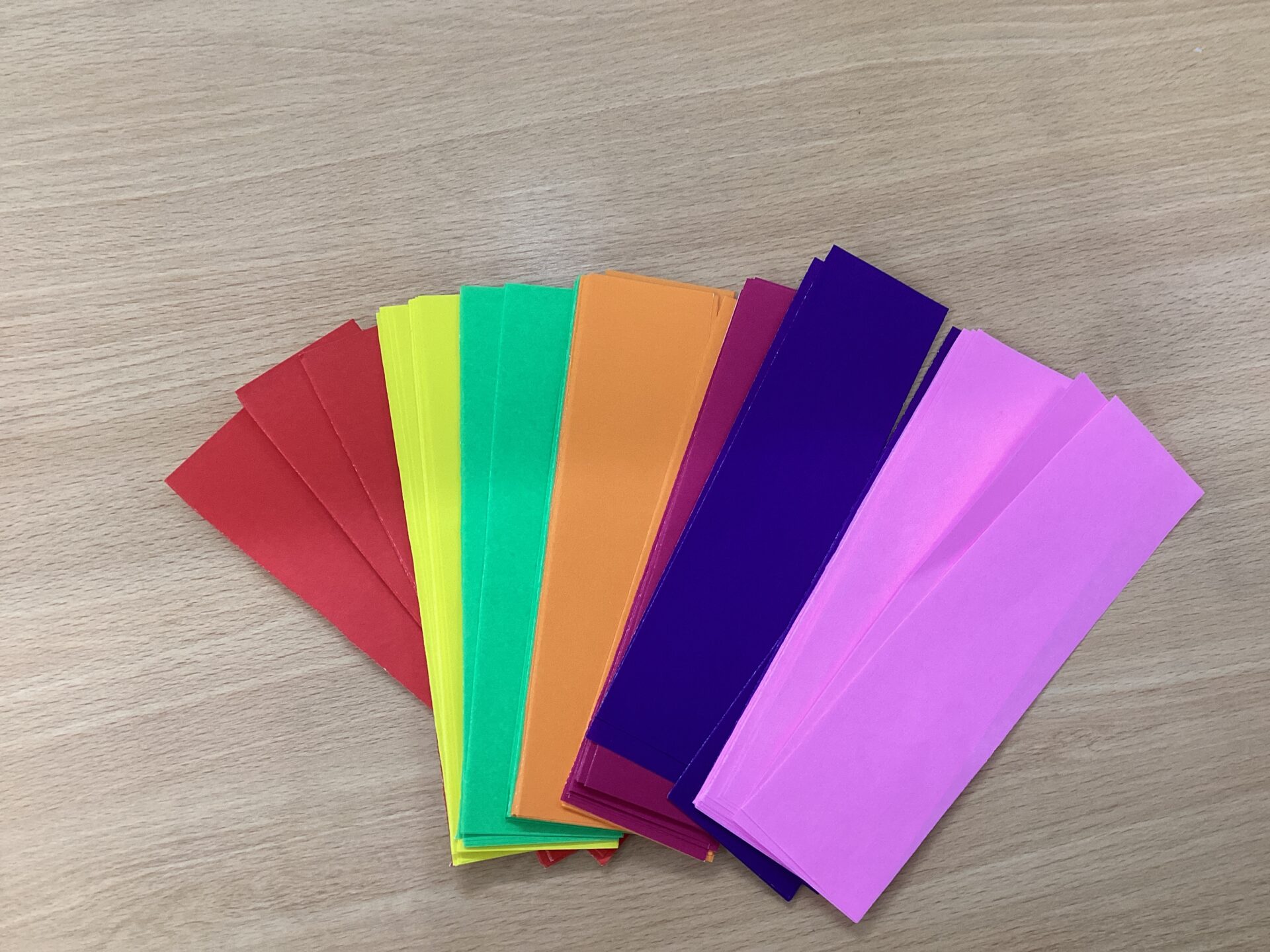 まず、細長く切っておいた折り紙から好きな色を5枚選びました😄