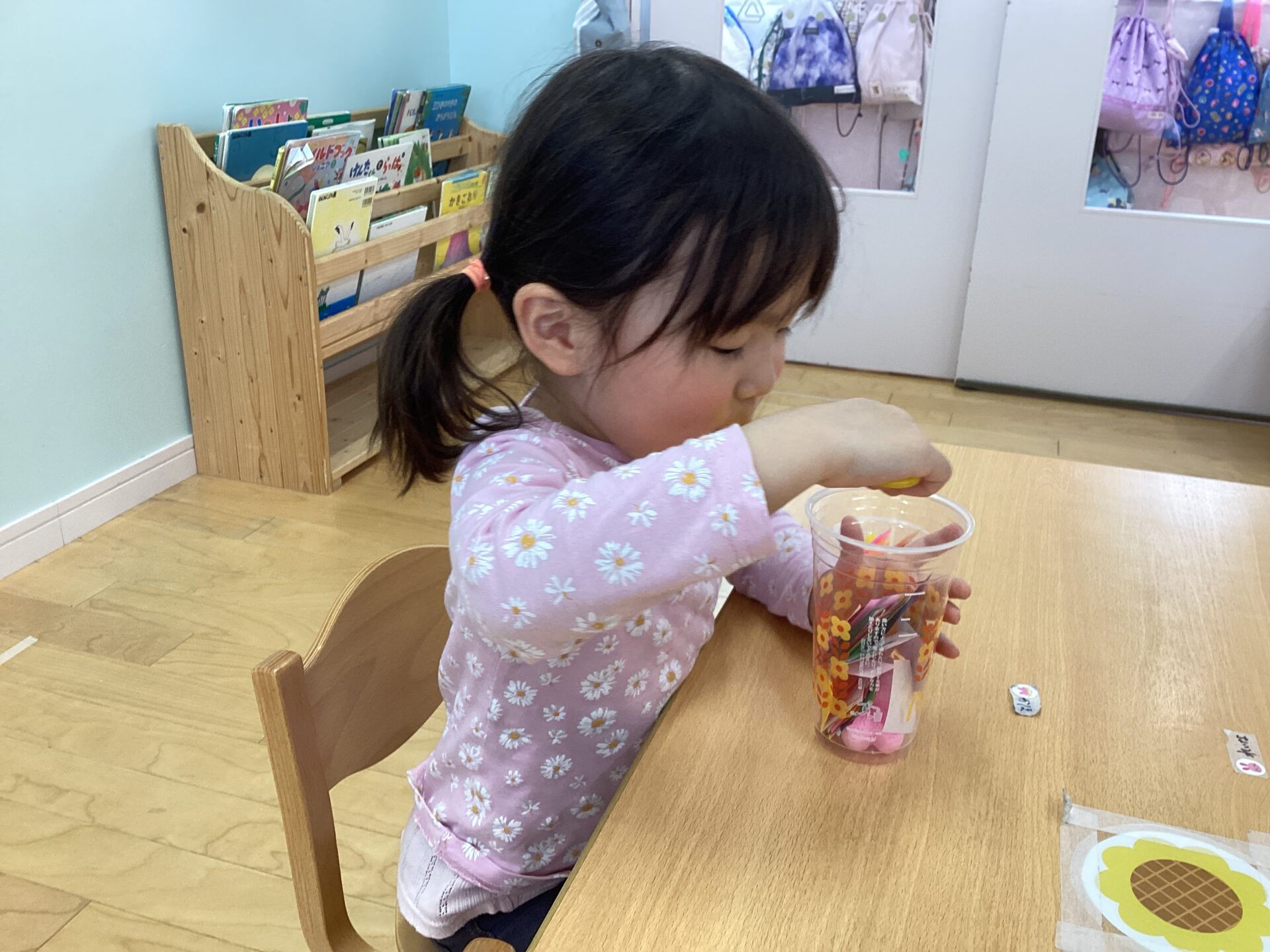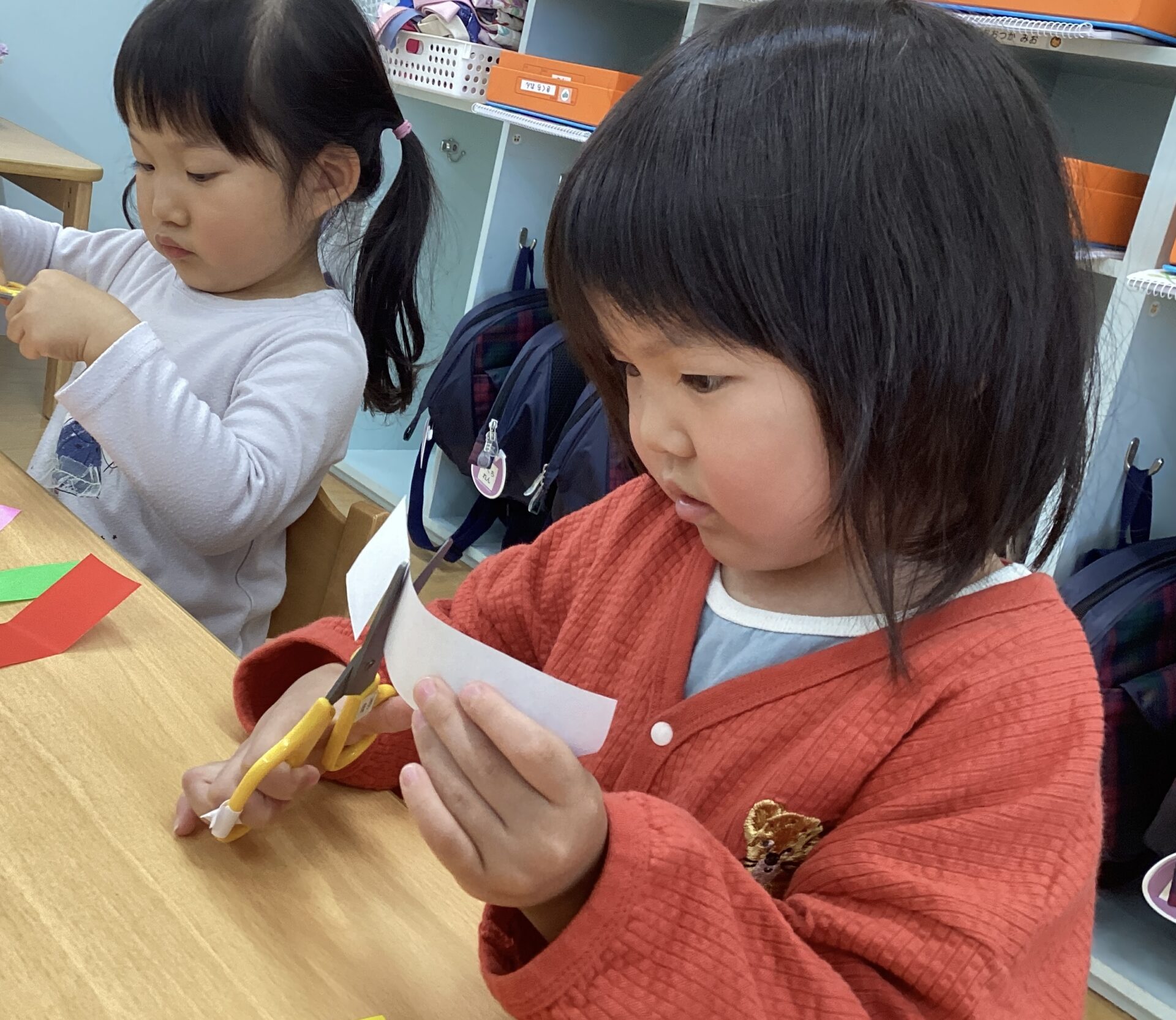同じ色の折り紙を選ぶ子、色々な色の折り紙を選ぶ子がいましたよ✨