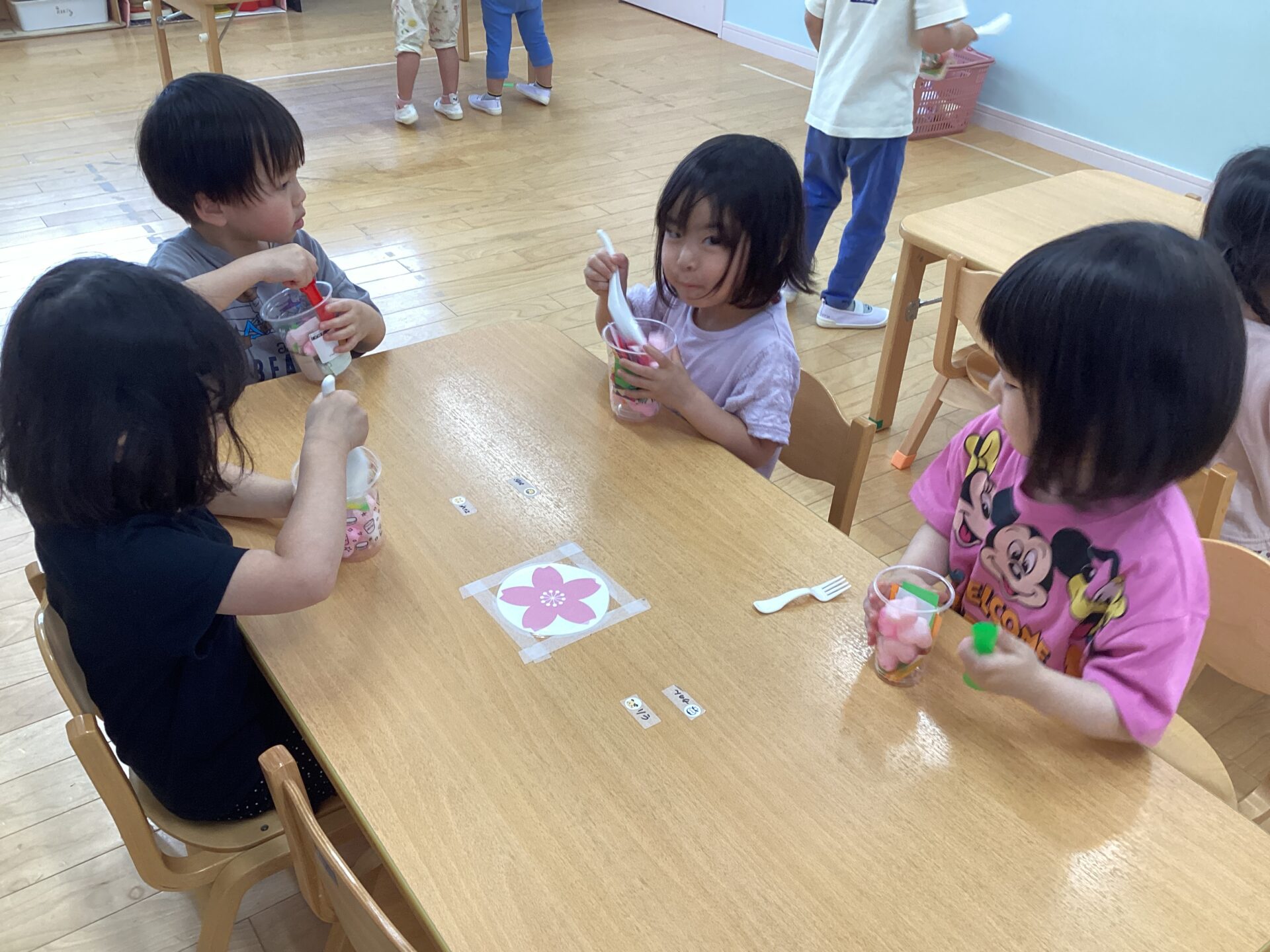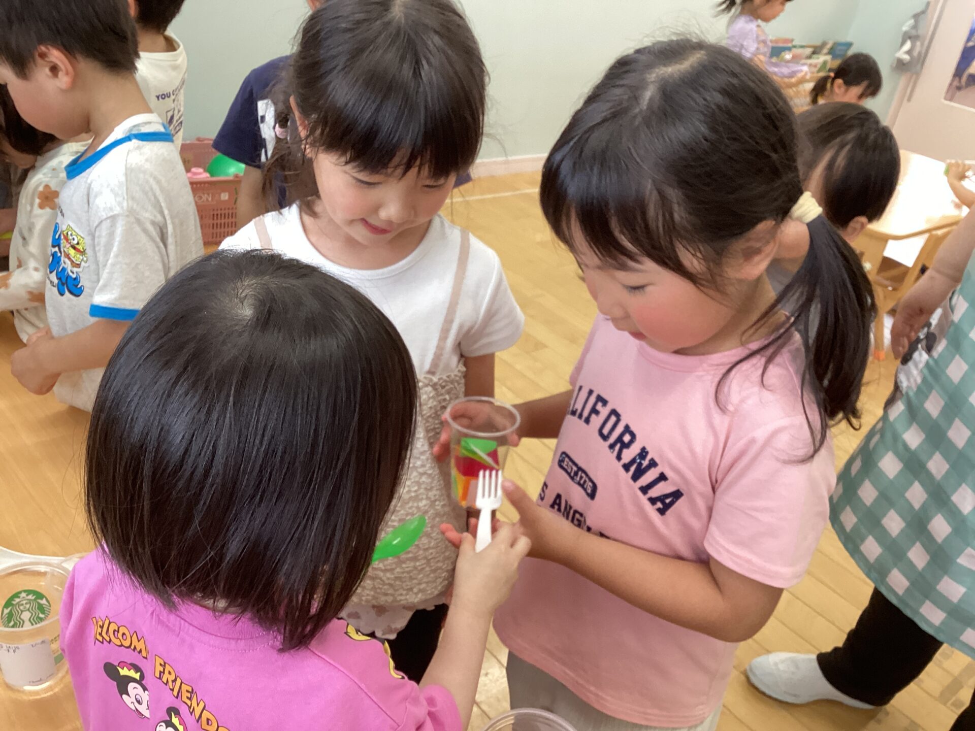 早速、皆でフルーツポンチをカップに入れて楽しみました☆