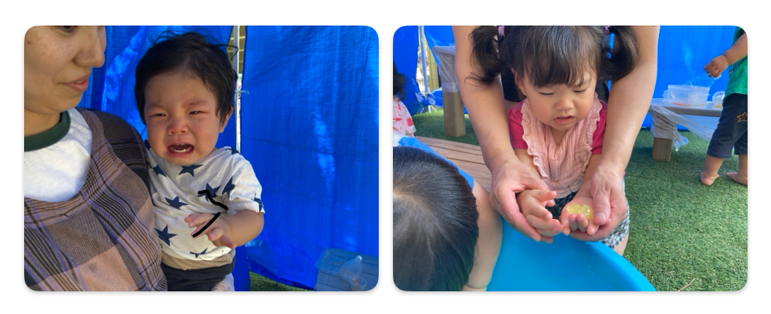 もちろん中には水の感触が苦手で思わず顔をしかめたり😖涙が出てしまう子も…