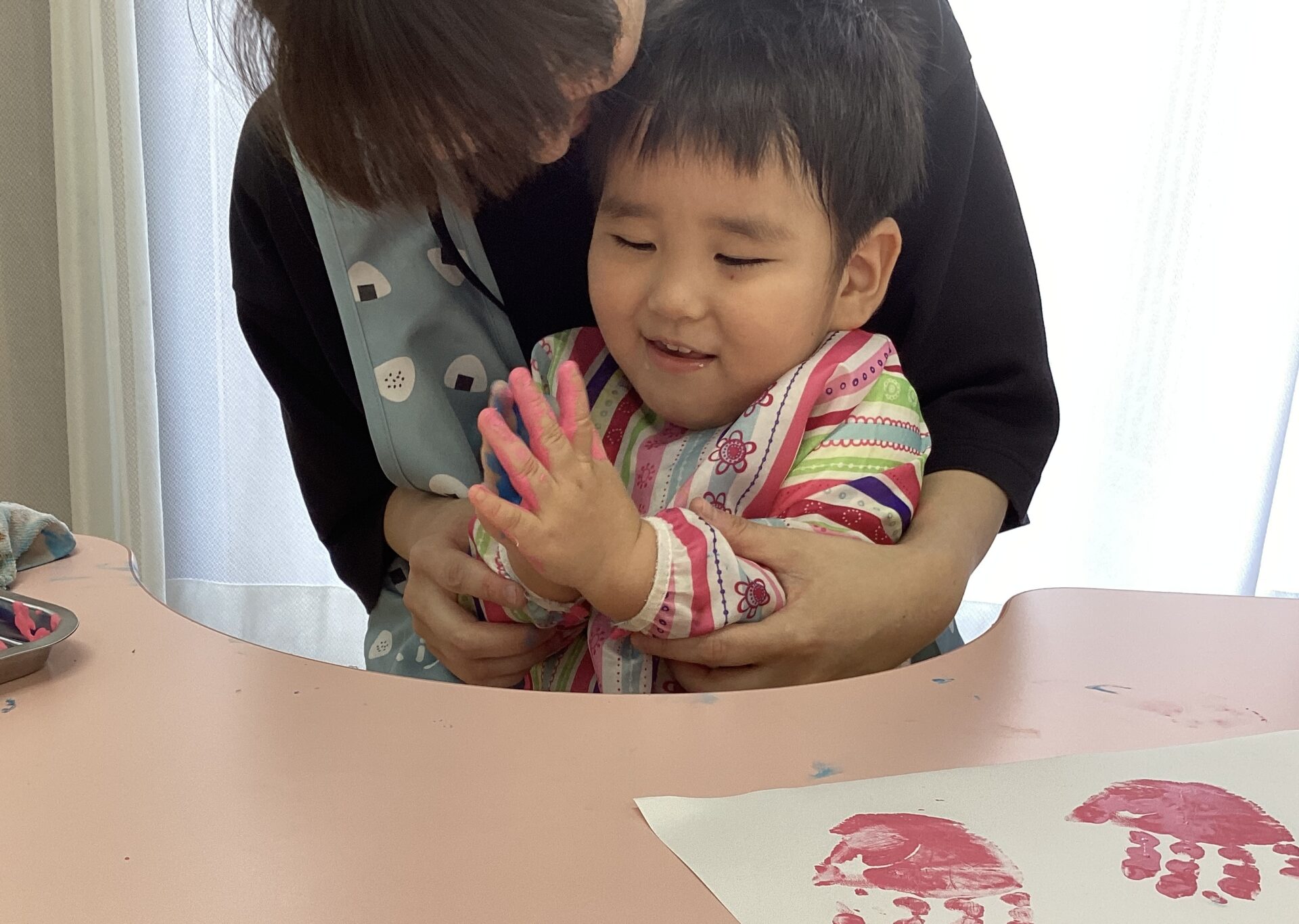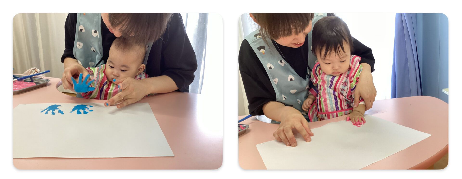 手型が取れた後に両手を合わせて絵の具の感触を楽しむ子もいました😊