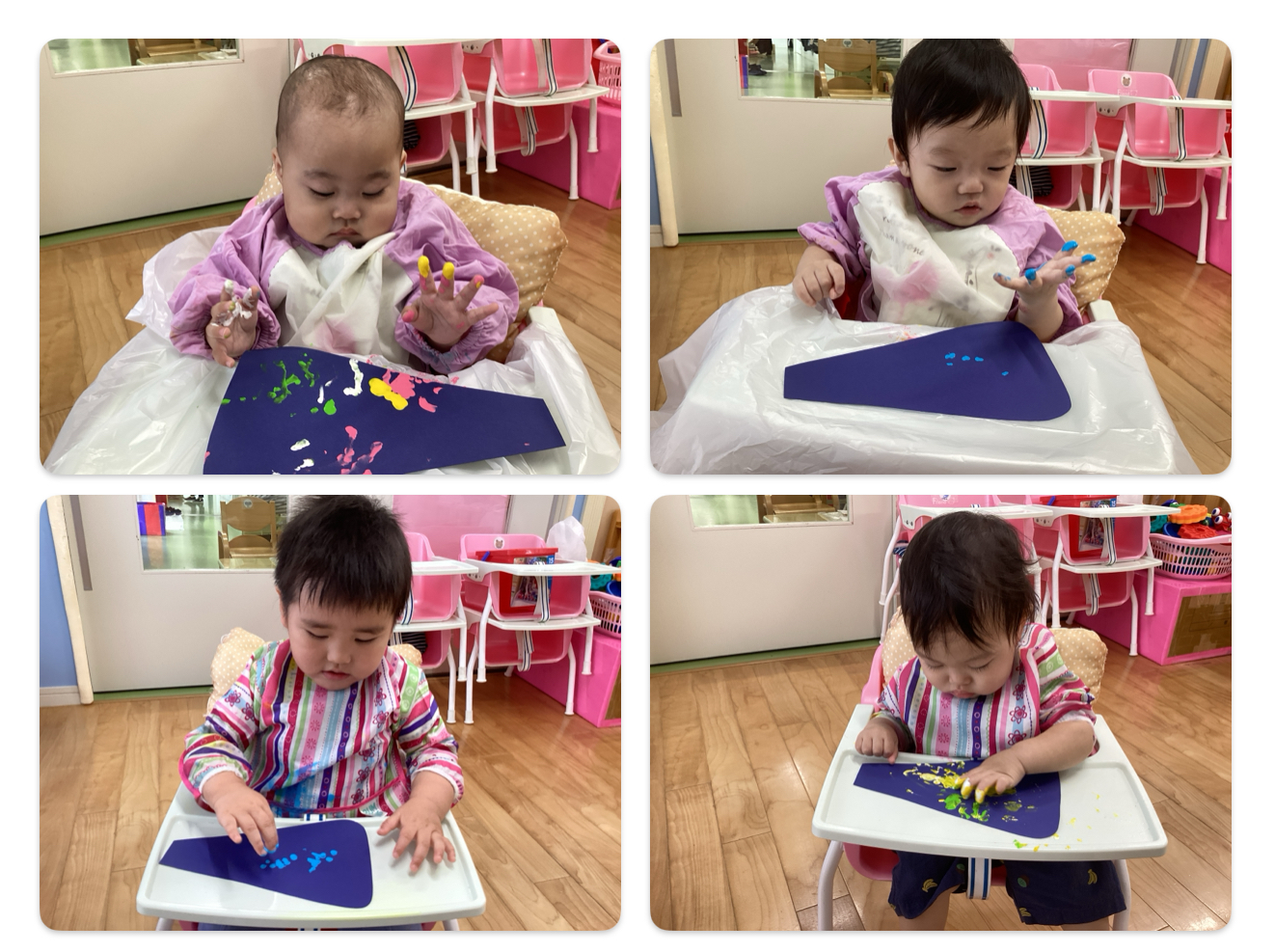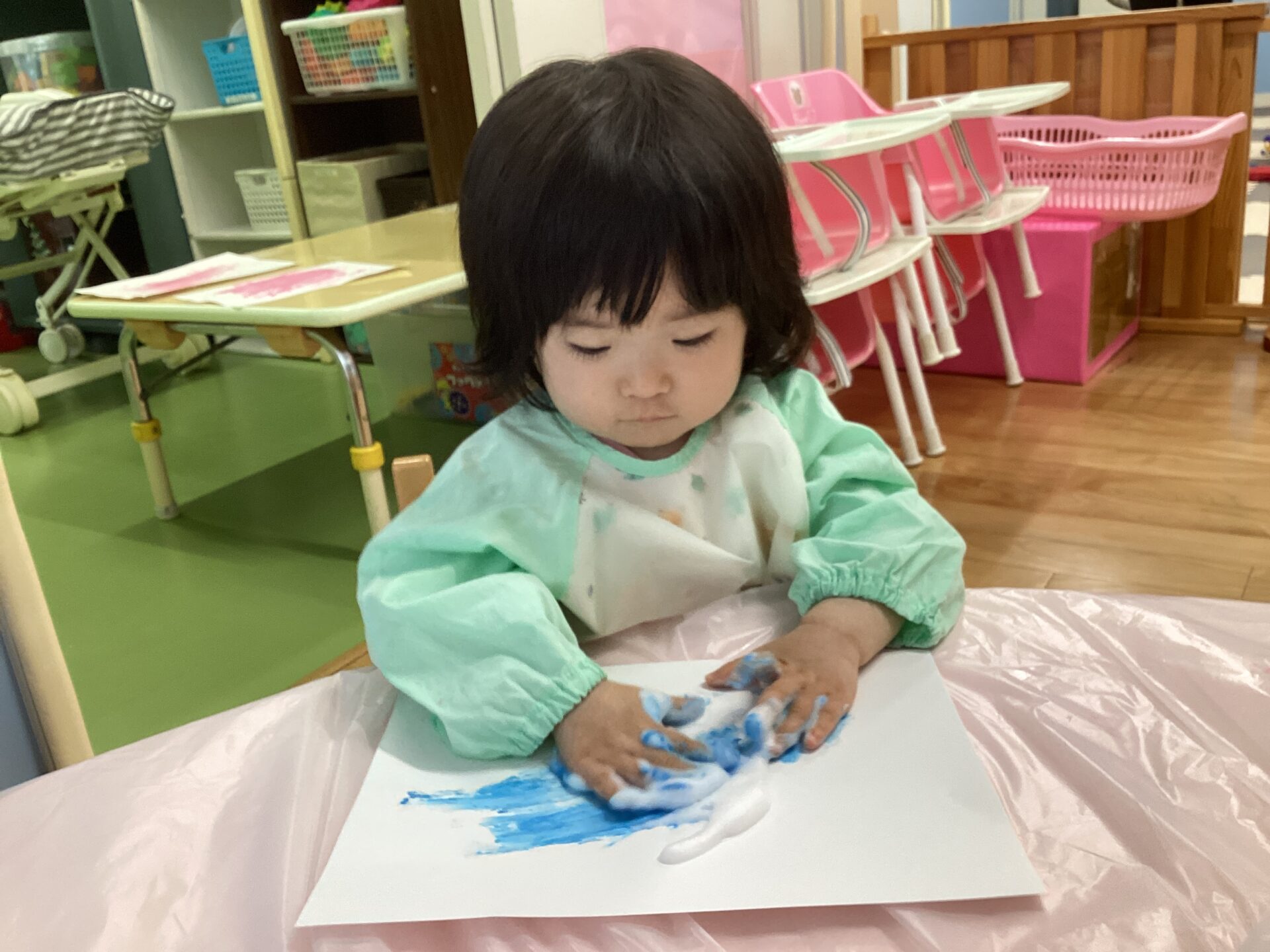 絵の具の冷たさやヌルヌルとした感触も経験を重ねる毎に楽しめるようになりました(^^)