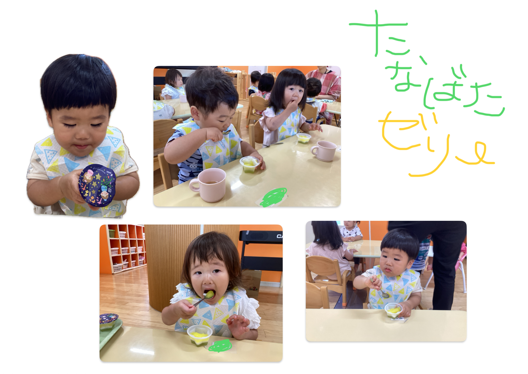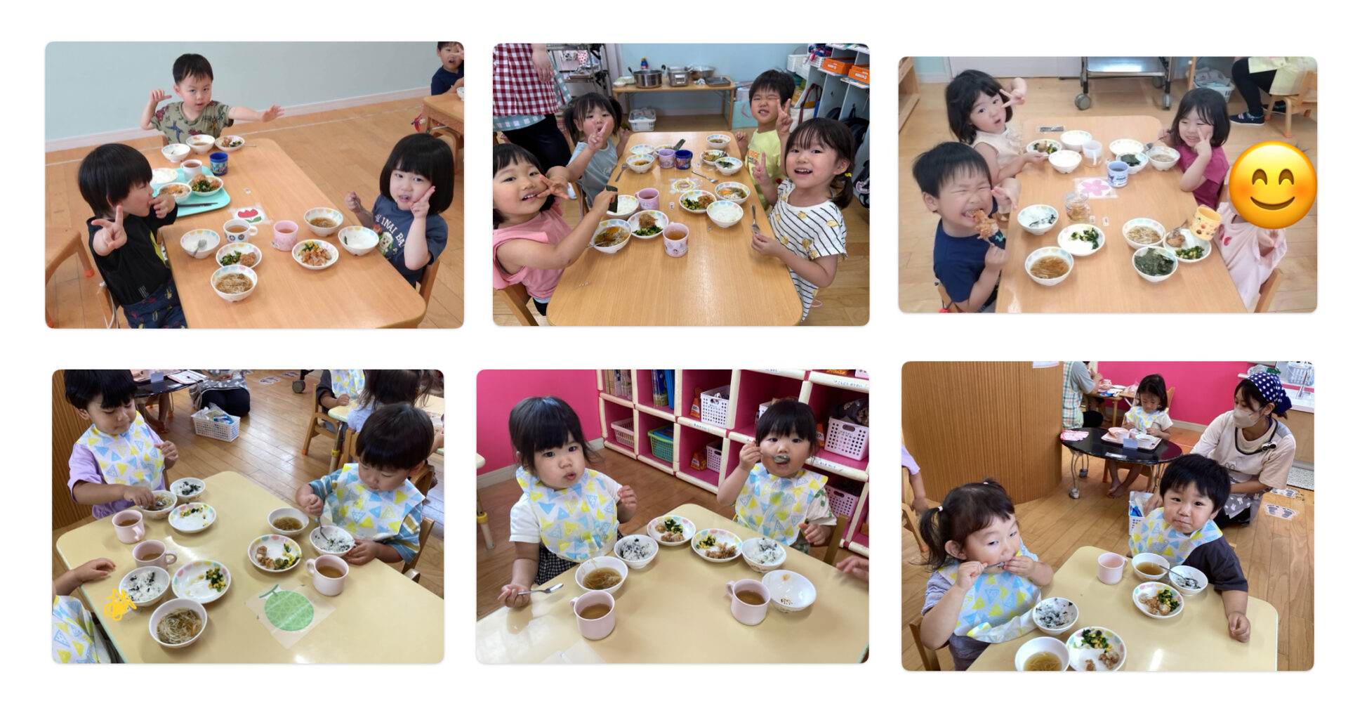 たくさん動いたらお腹ペコペコ。美味しい七夕メニューを食べてにっこり笑顔のこども達でした😋