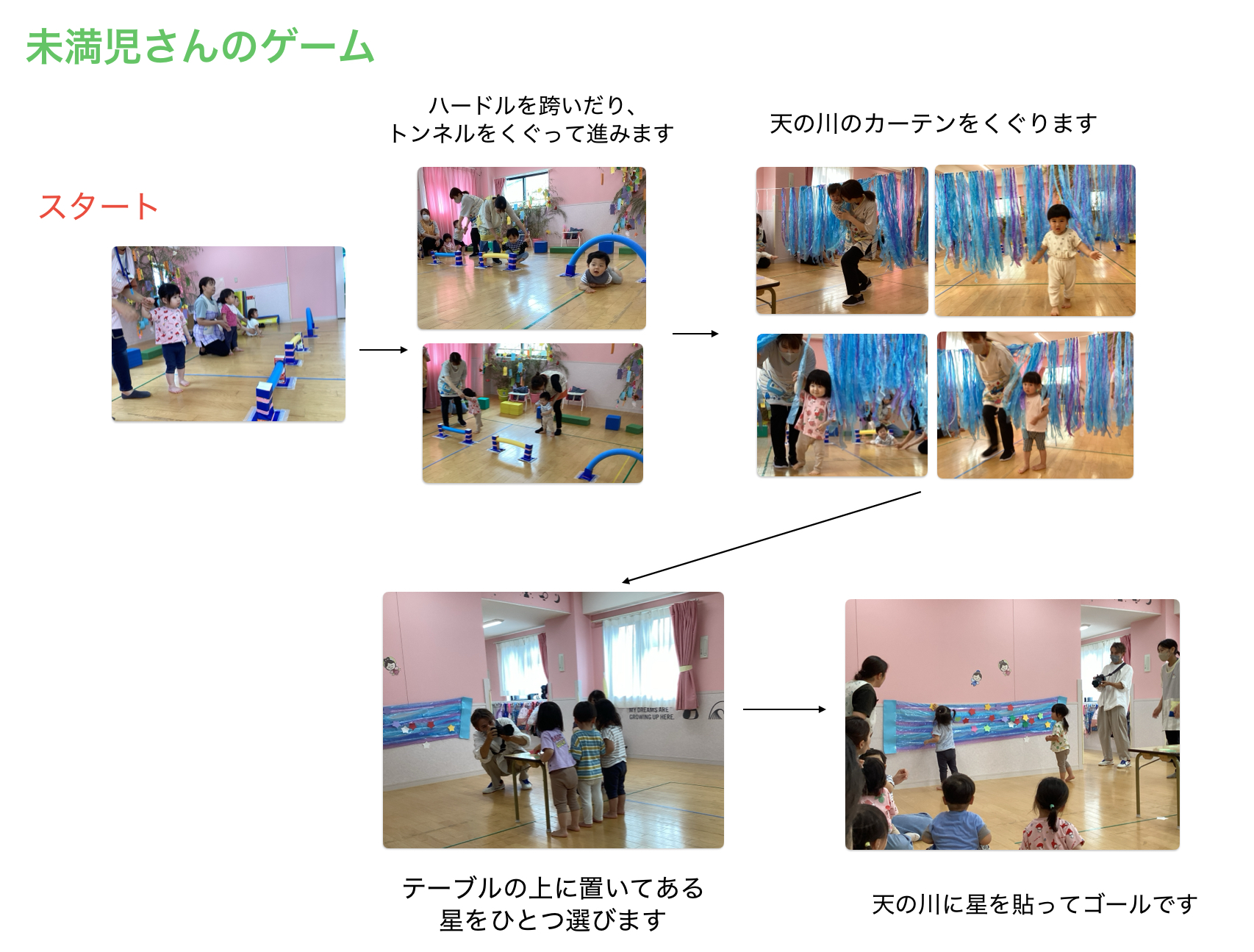 未満児は障害物を乗り越え、天の川に星を貼ろう❗️ゲームです。