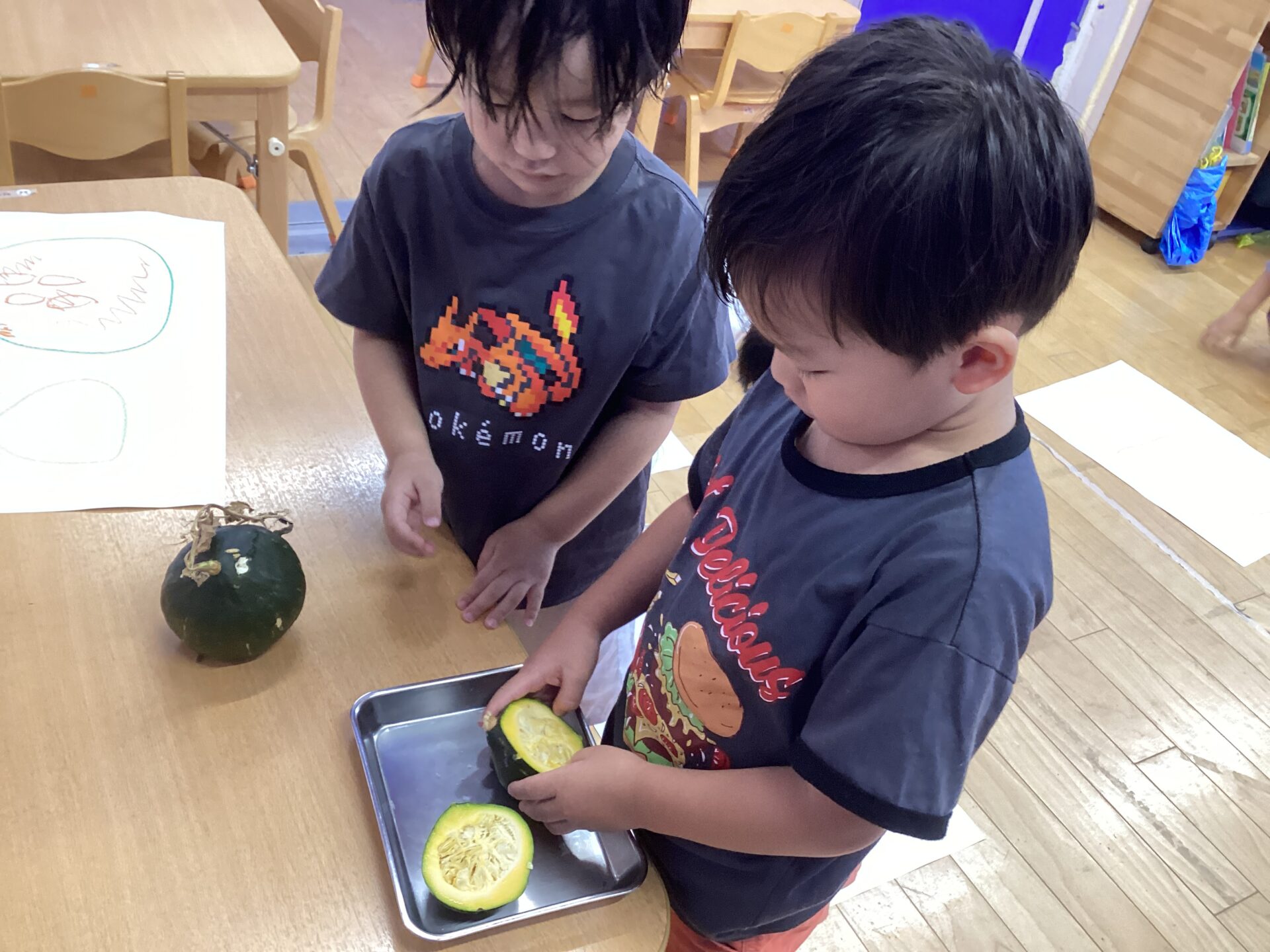 かぼちゃは食べることができませんでしたが、子どもたちの観察力に本当に感心した制作活動でした✨
