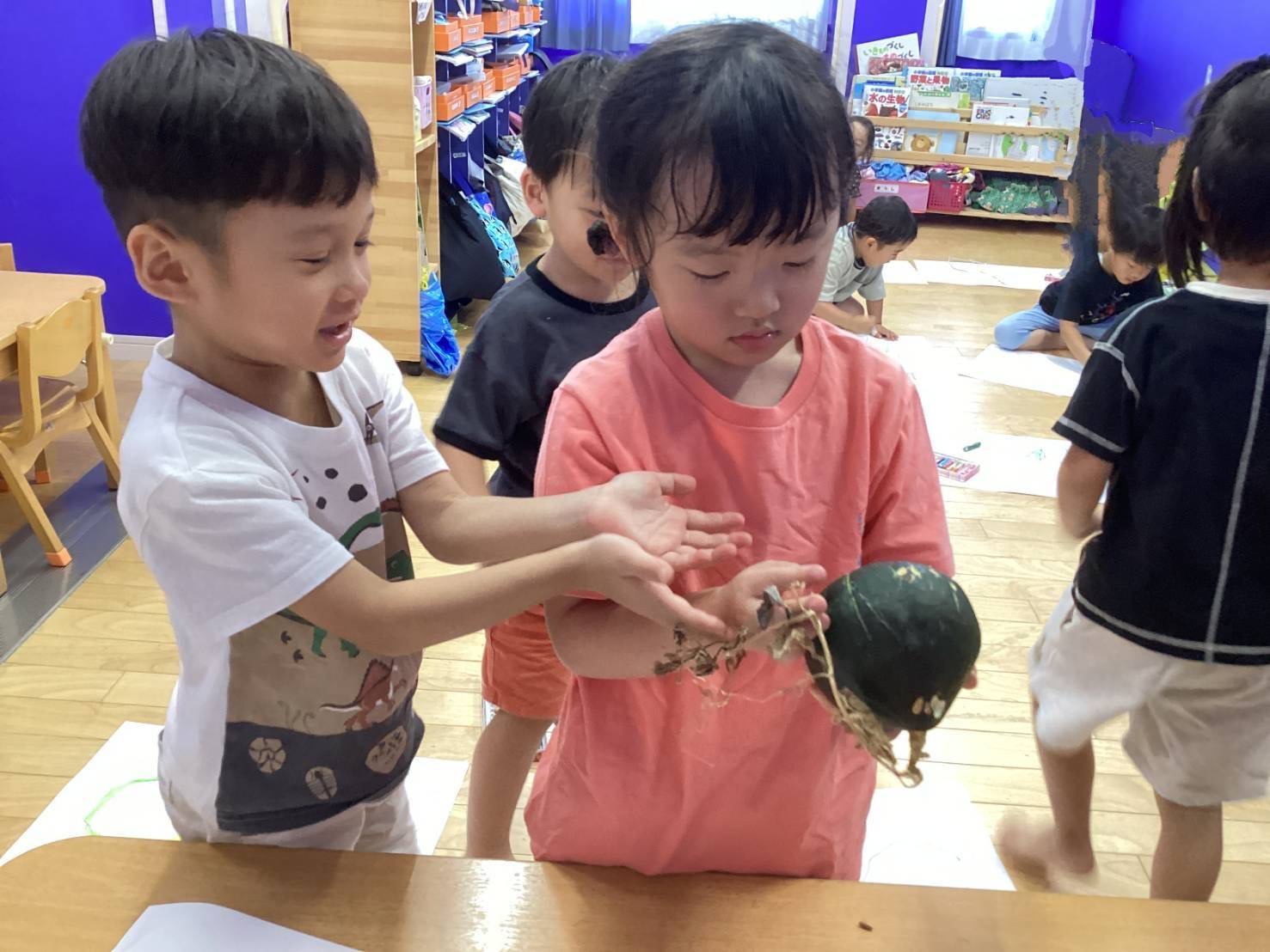 「このかぼちゃができたの❓すごいー🤩」と収穫したかぼちゃのことを喜んでくれました☺️