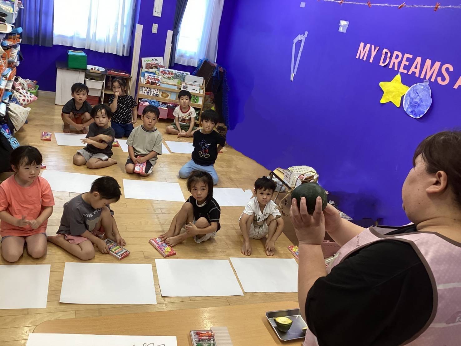 かぼちゃを切った時に水々しくて光って見えた子もいて、水色でその様子を描いた子もいました😊