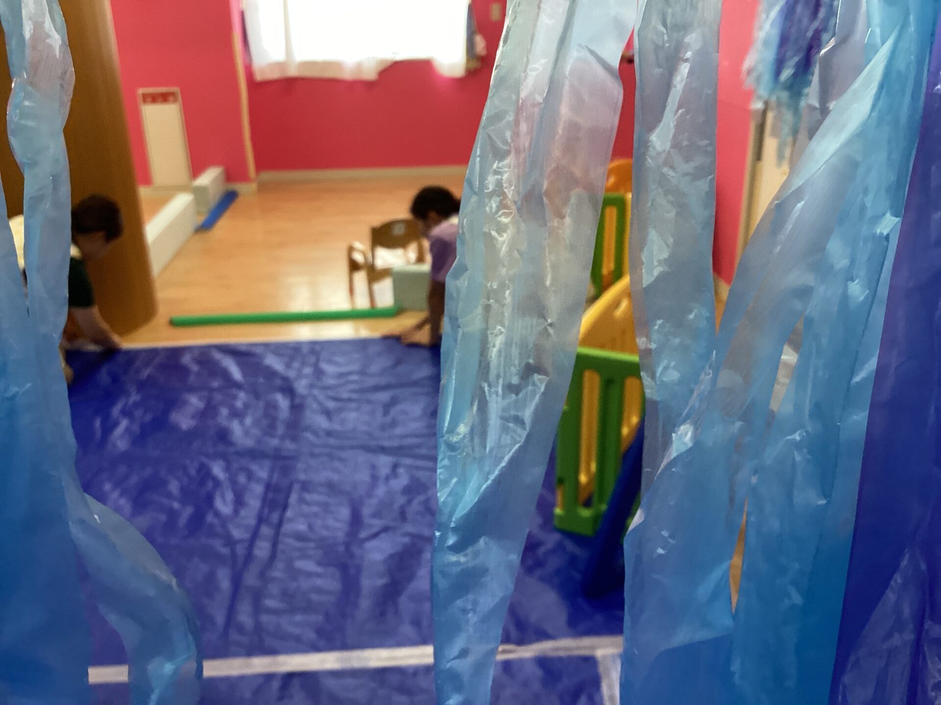 何やら、にじぐみのお部屋が青色になっていきます。
