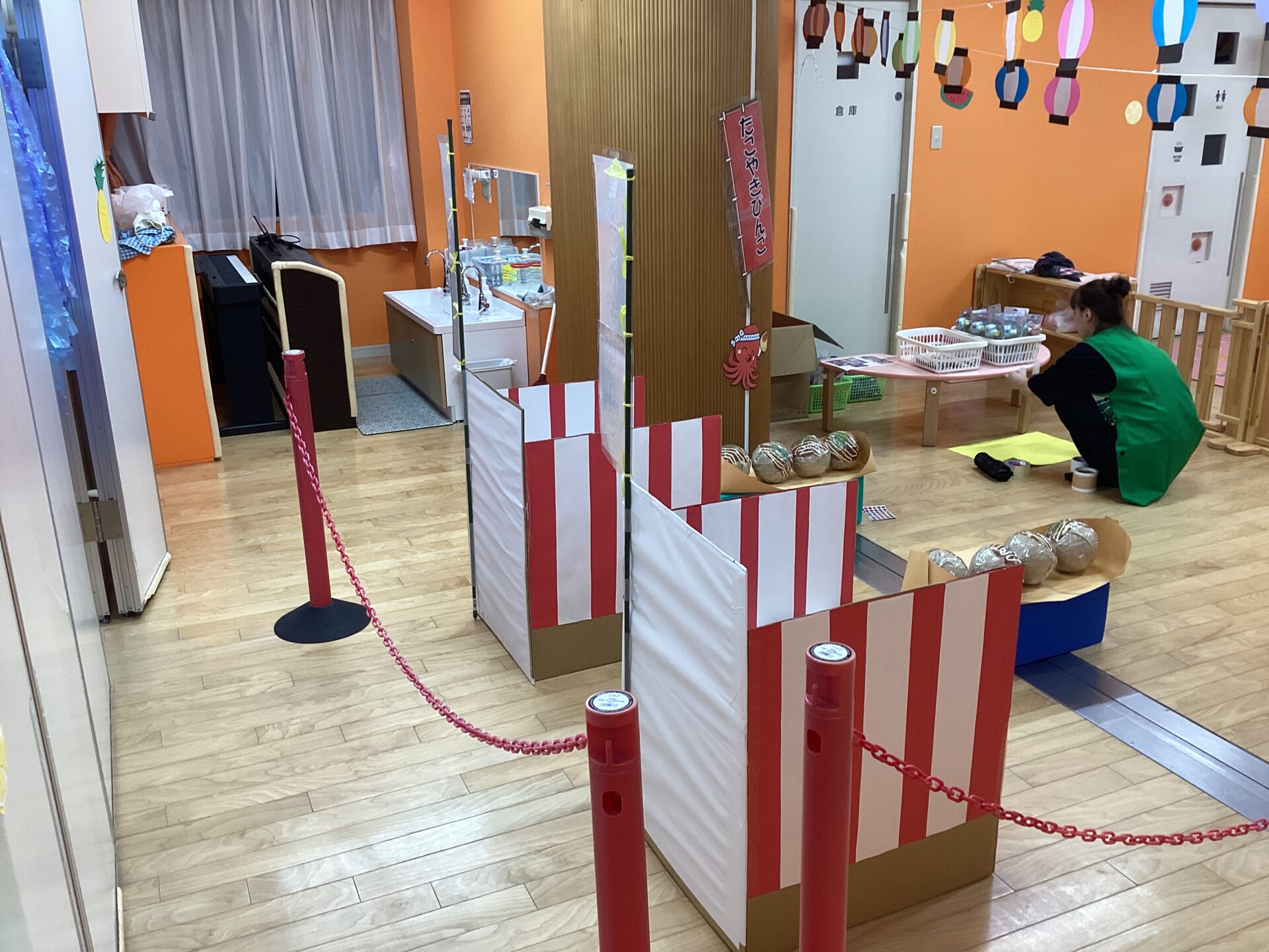 今日の午後から先生達は園内をお祭り会場へと変えるため、