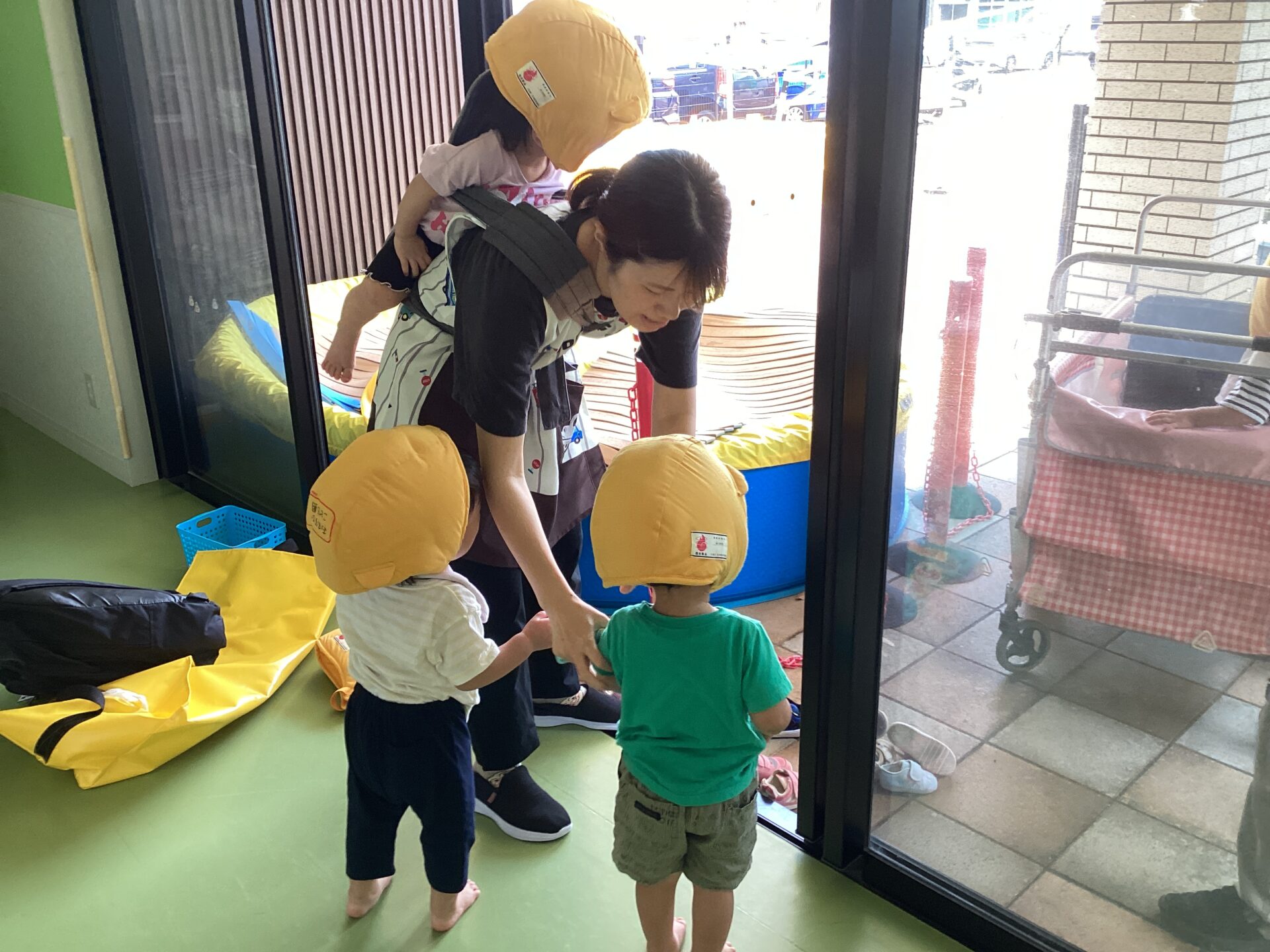 保育者間でもクラスの様子を伝え合いながら改善点を見つけ、次の訓練や災害へいかせるようにしていきたいと思います。