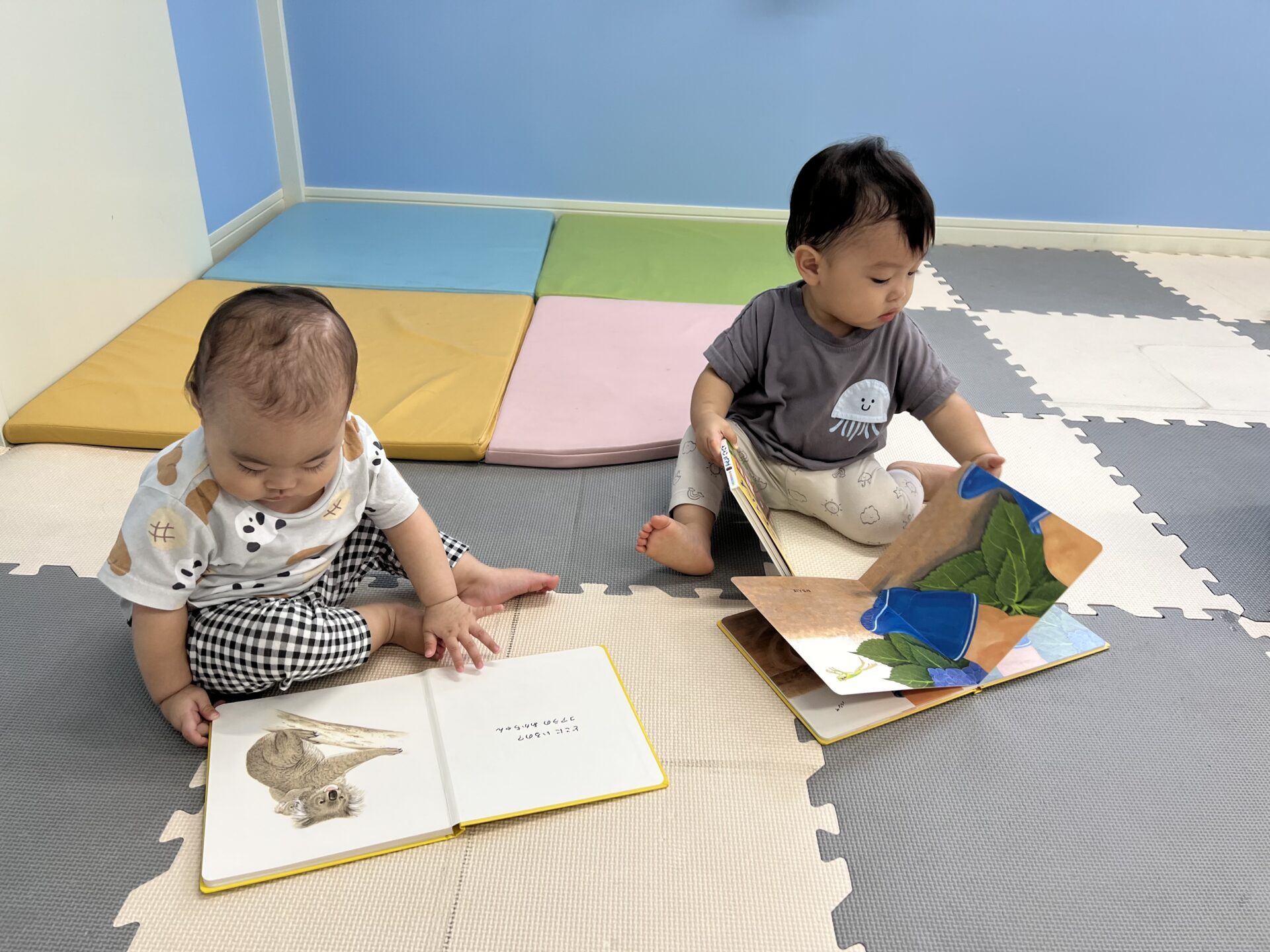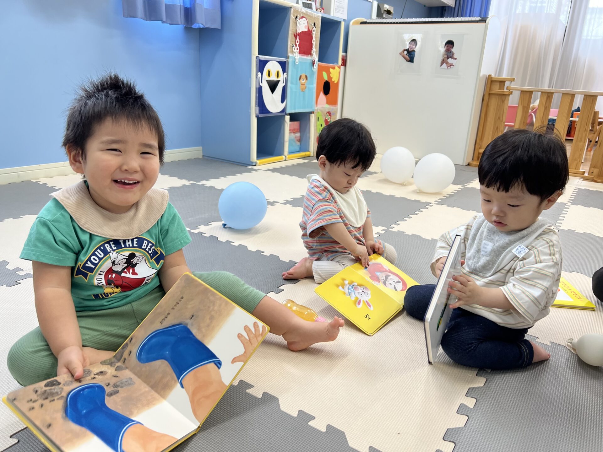 こども達も絵本に興味津々です😄絵をじっくりと見たり、ページをめくる感覚を楽しんでいますよ😊