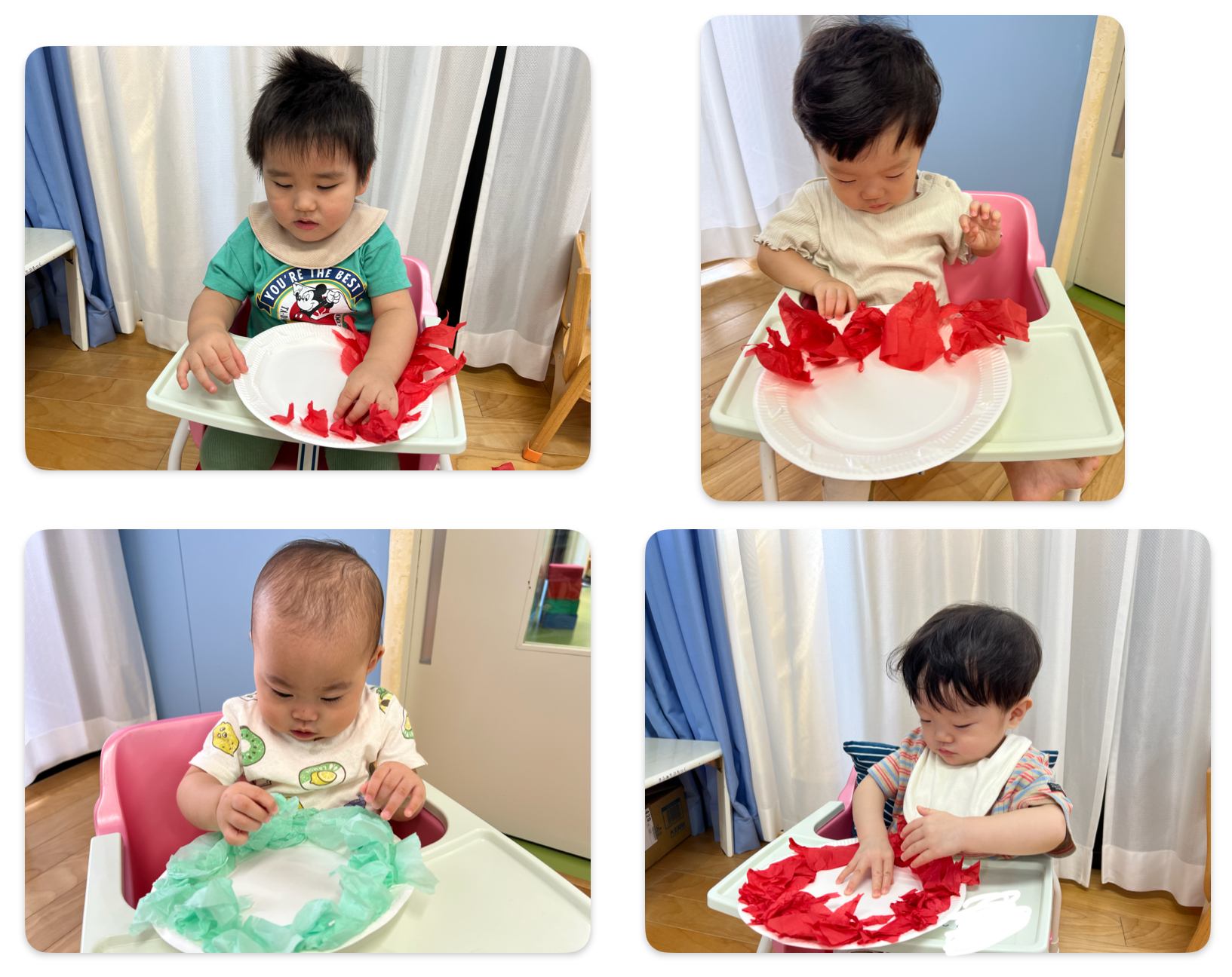 まずは、ちぎります☺️引っ張ったり、ひねったりと工夫しながらお花紙を小さくしていきました😊
