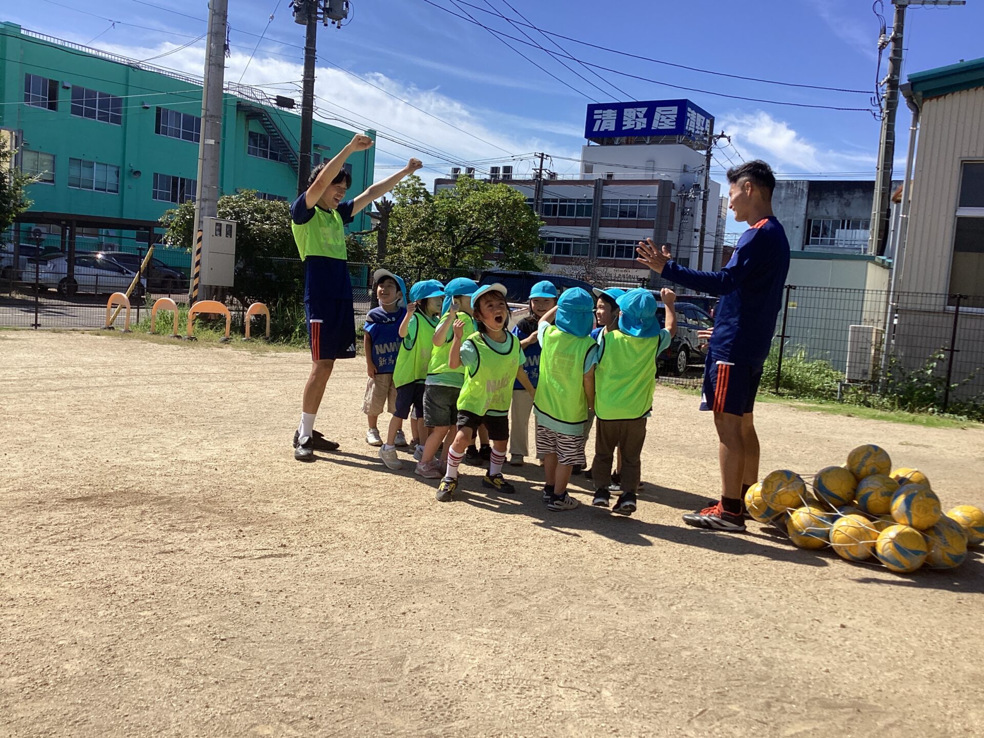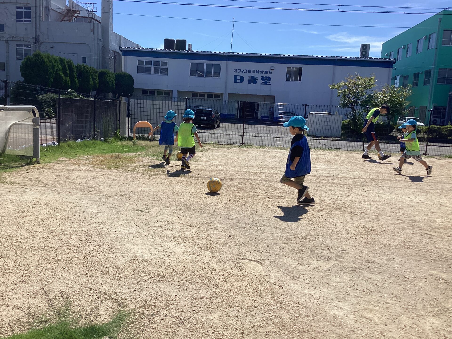 今月からやっと過ごしやすい天候となり外でのサッカー教室が行われました。秋らしい青空の下、そら組のみんなの元気いっぱいな声が響き渡りました。