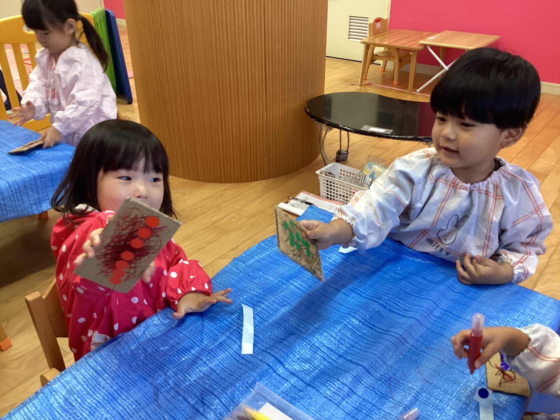 完成した後は園内を練り歩き、先生やお兄さんお姉さんに見せに行きました!「かわいいね〜」と褒めてもらうと嬉しさ半分恥ずかしさ半分な表情の子どもたちでした😆