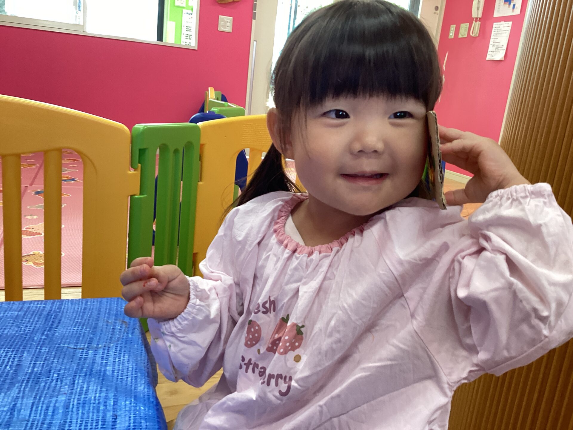 「じゃーん!」と見せてくれたり、「もしもーし」と電話をかけたり、写真を撮ったりと自分だけの電話に大喜びの子どもたちでしたよ💕