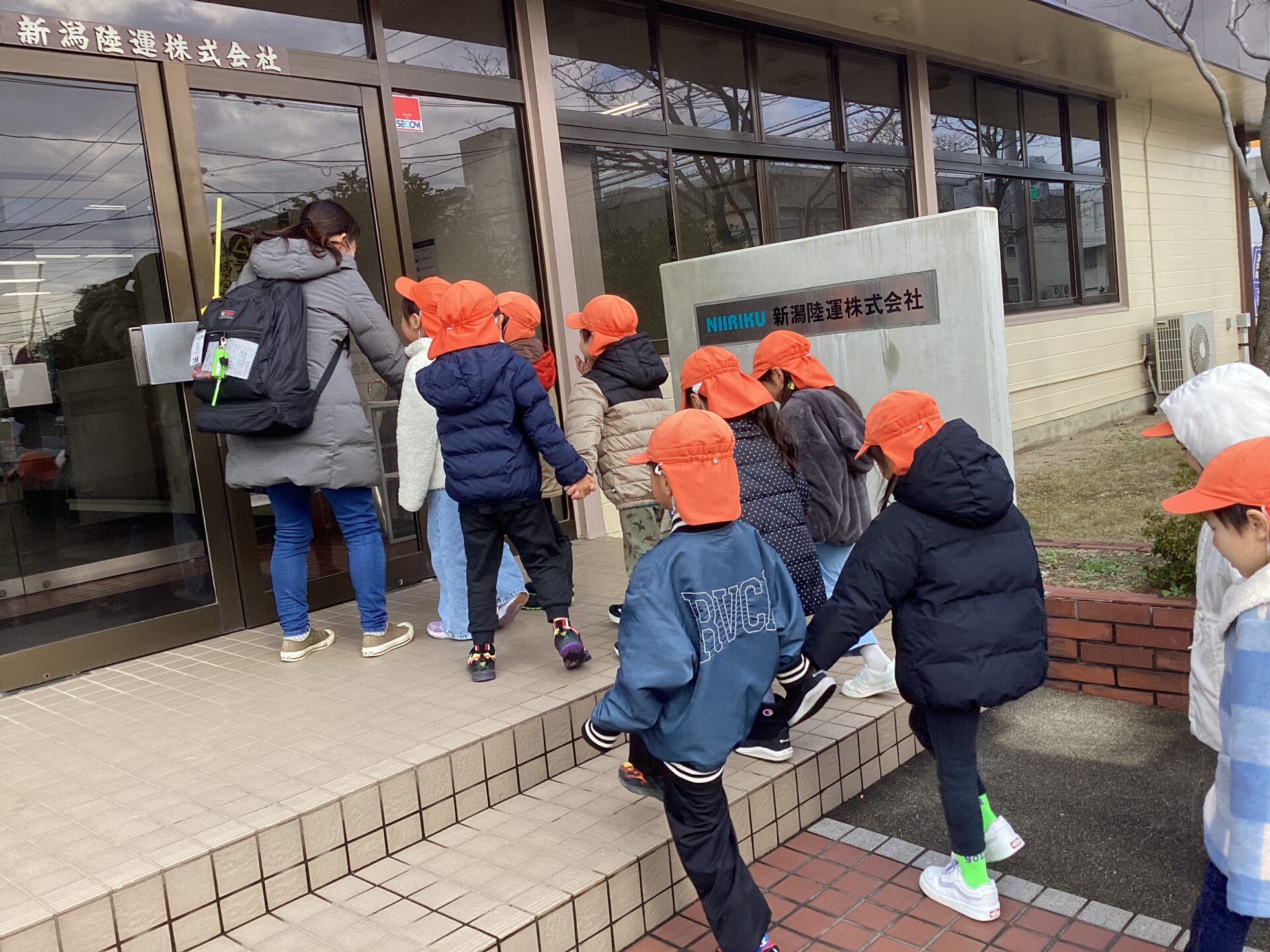 新潟陸運さんに到着すると、出発前にした約束通り静かに会社の中に入りました。