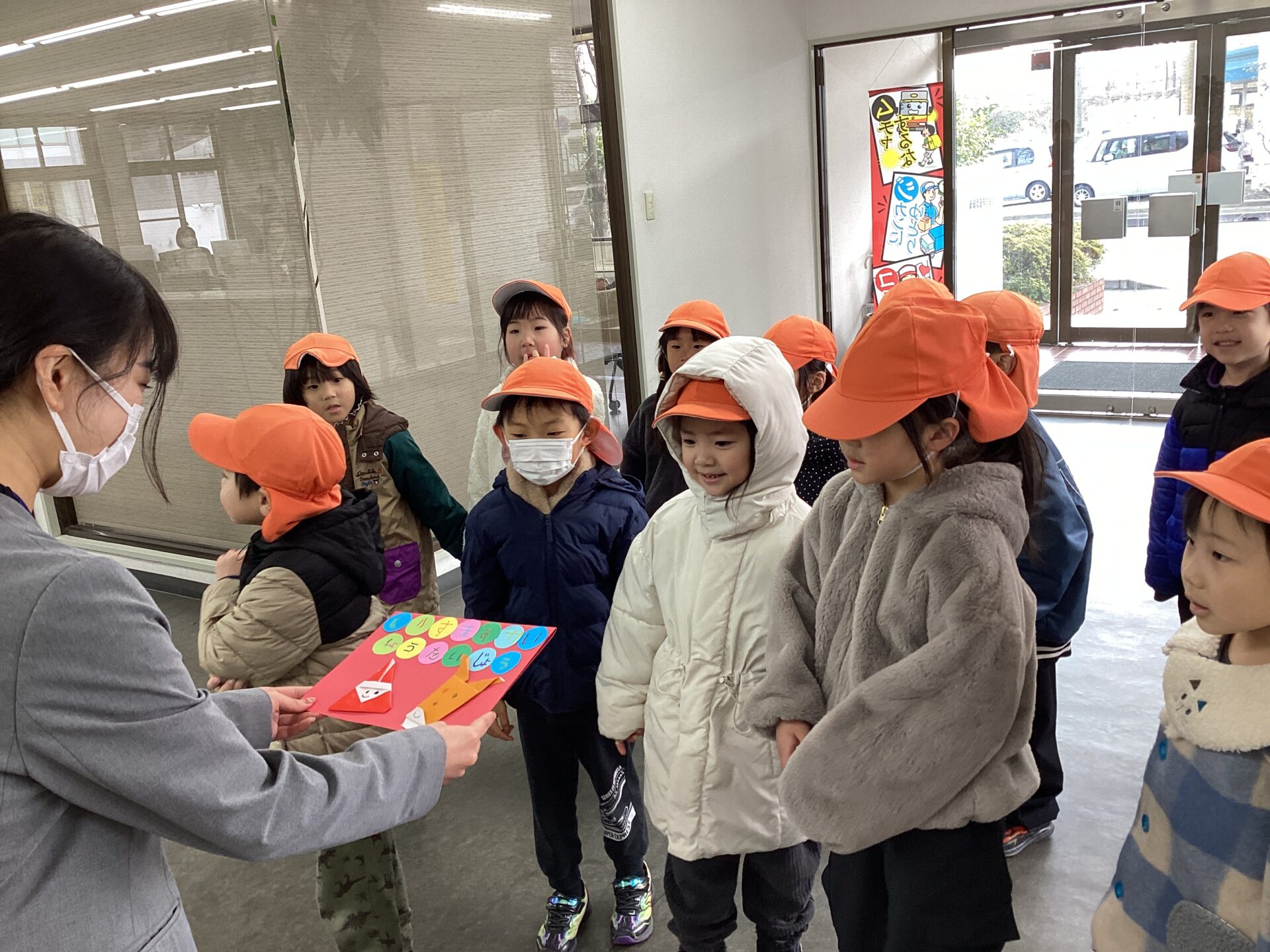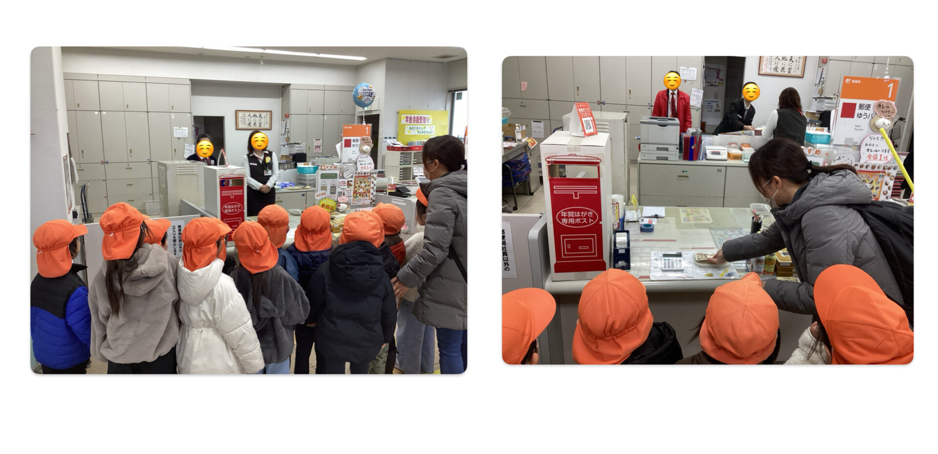 保育者が代表してお金を払い、年賀状を受け取ると「ありがとうございました」とお礼を伝えて郵便局を後にしました。