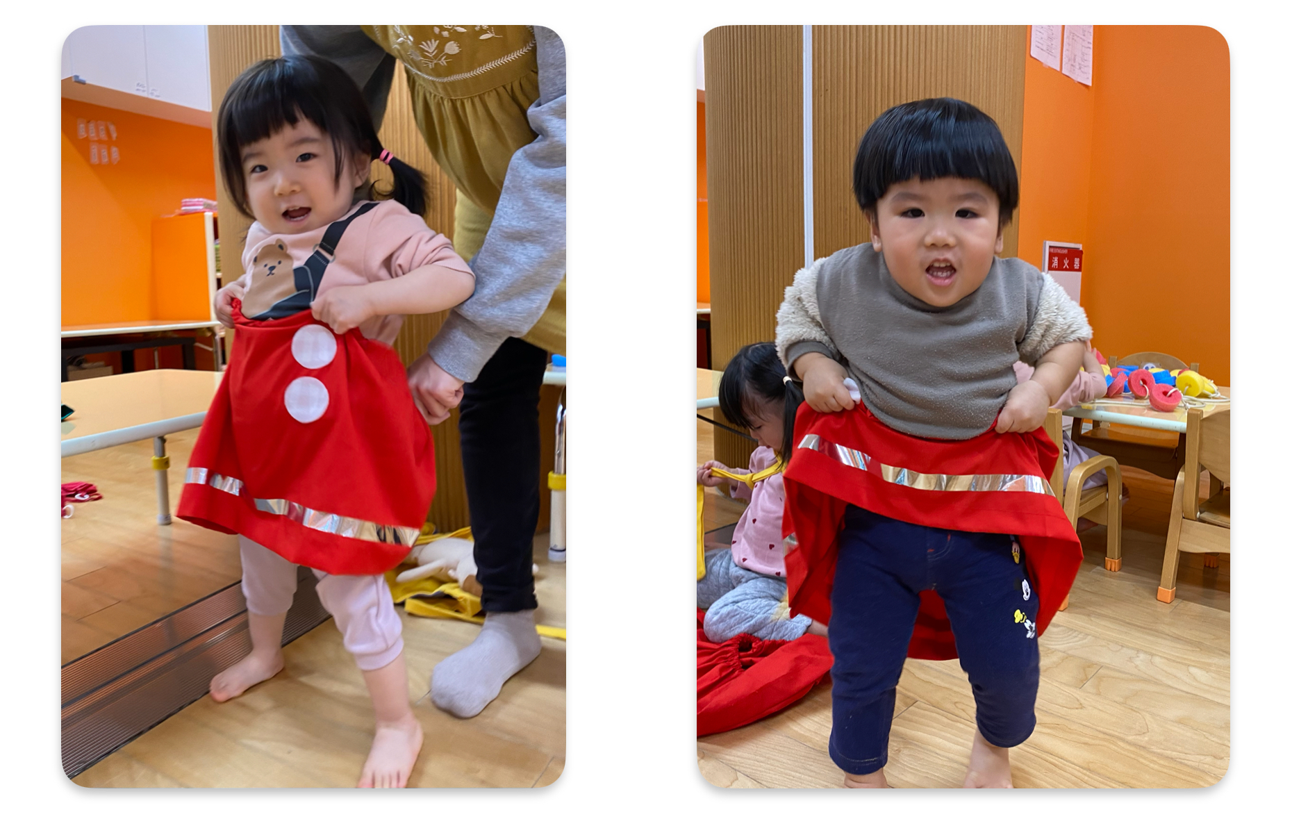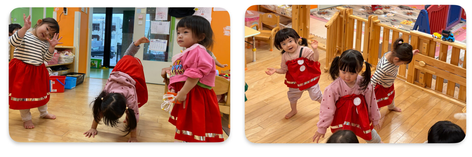 可愛いひらひらのスカートを用意すると、みんな大喜びで履き始めていました✨