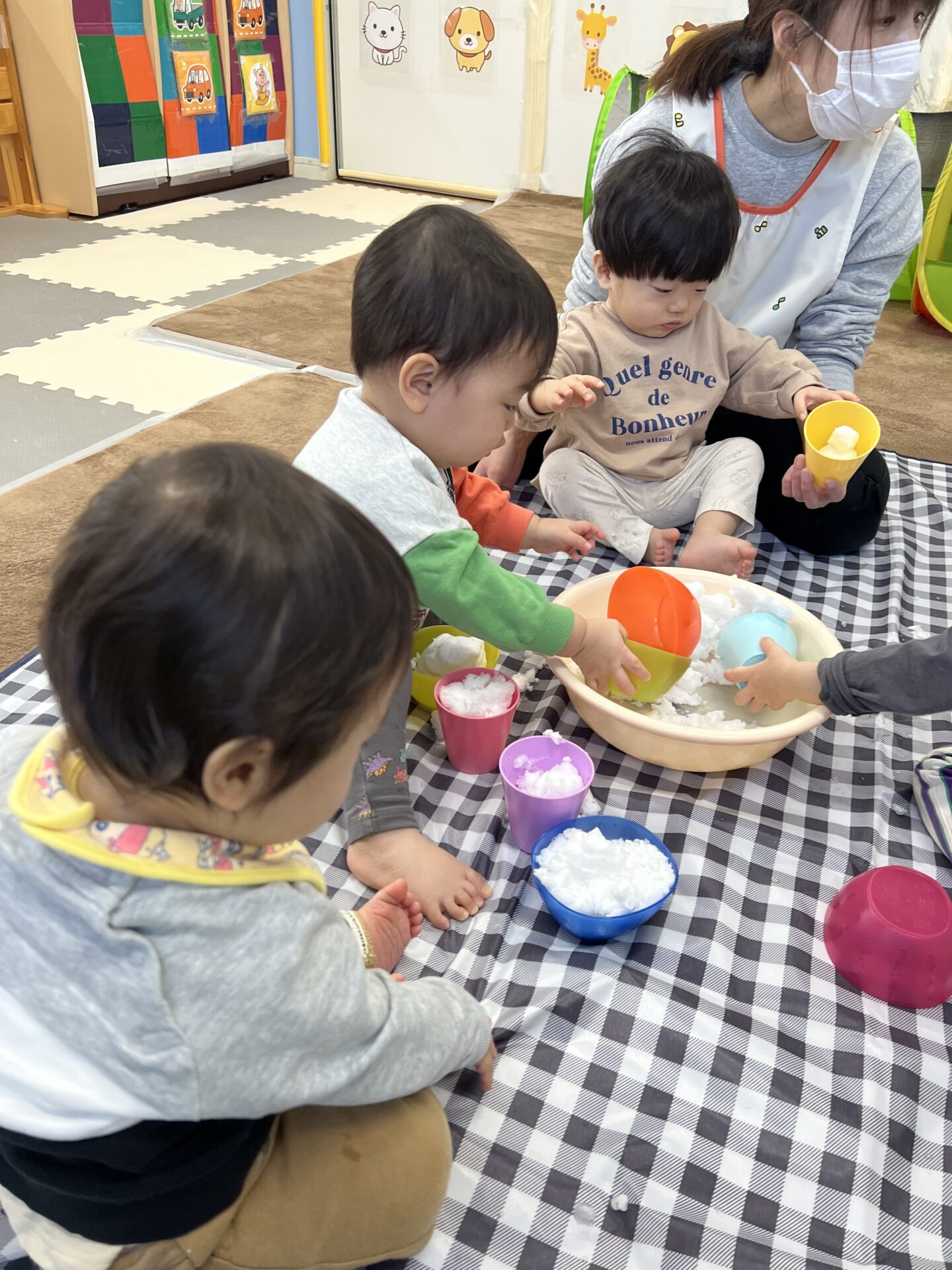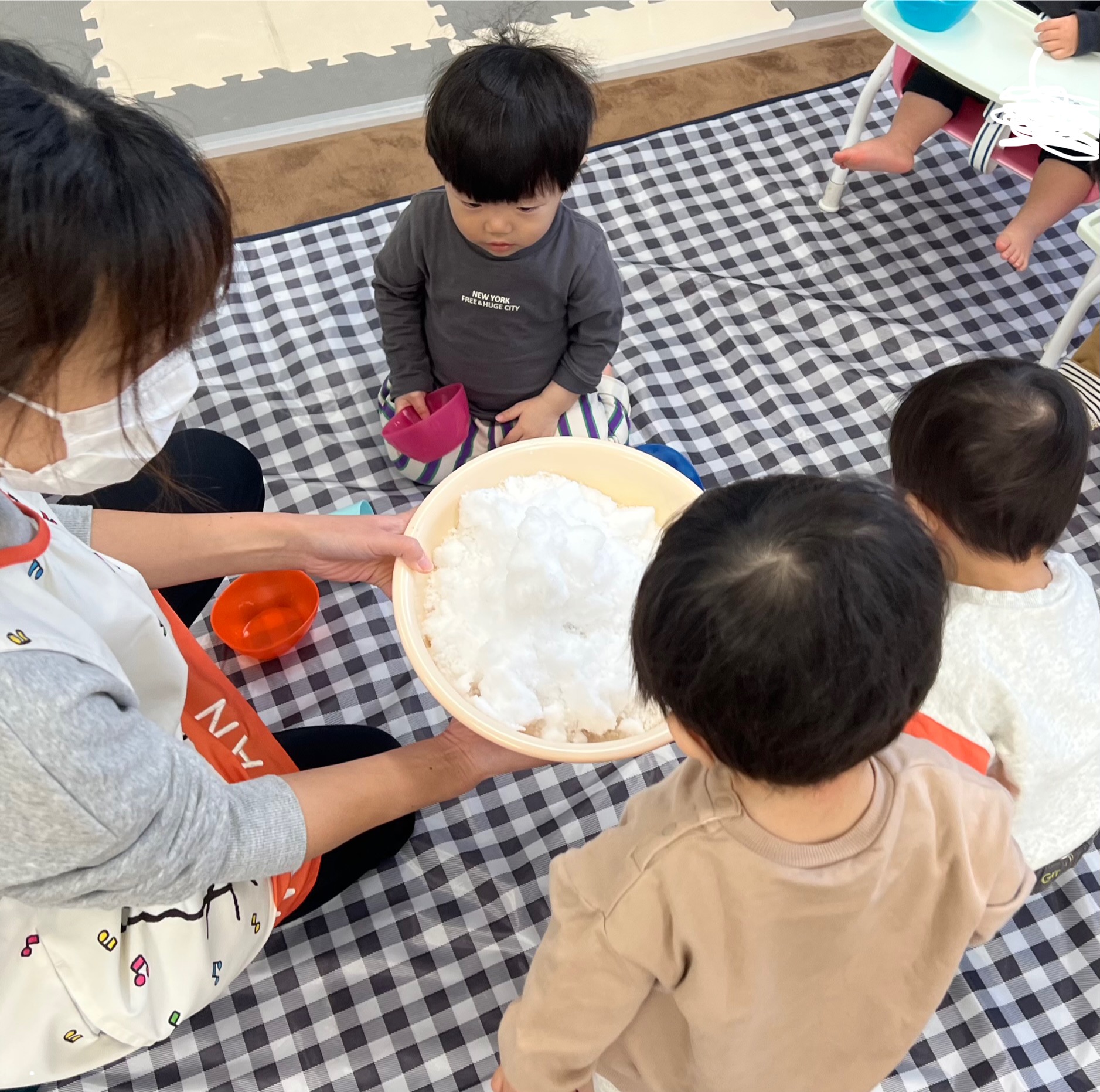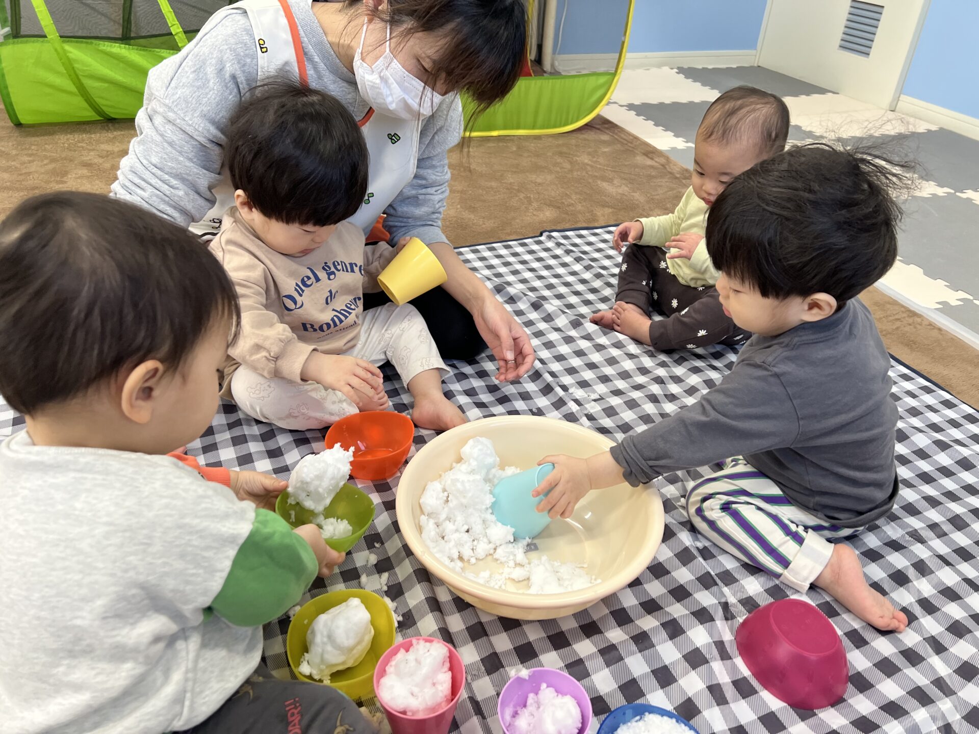 一人ひとり触って楽しめるように雪をお皿に入れてみました✨