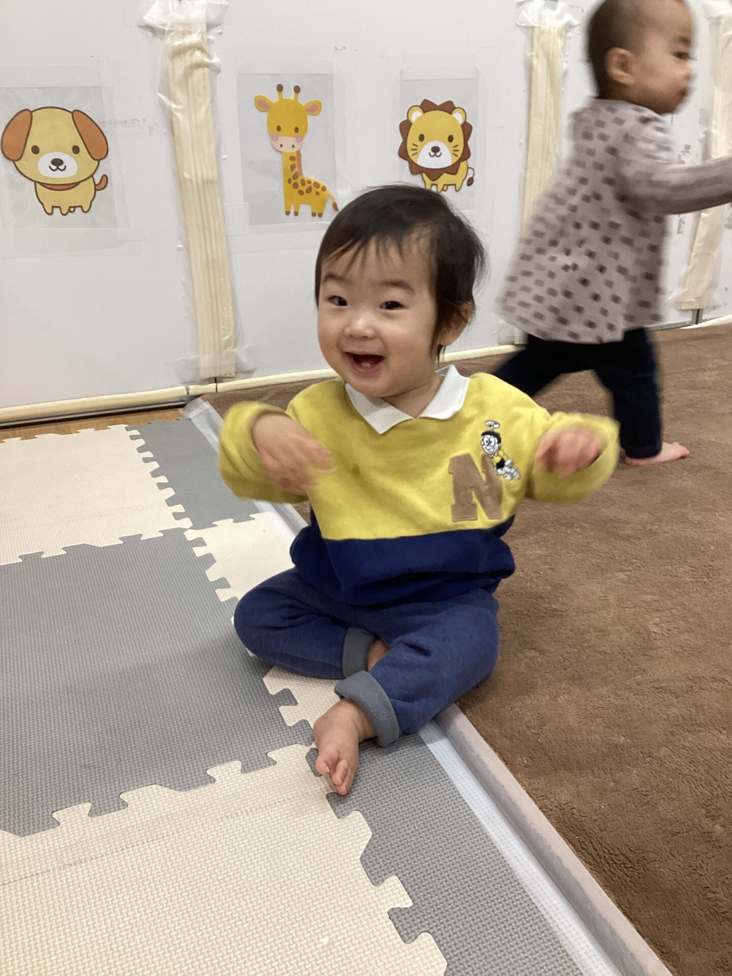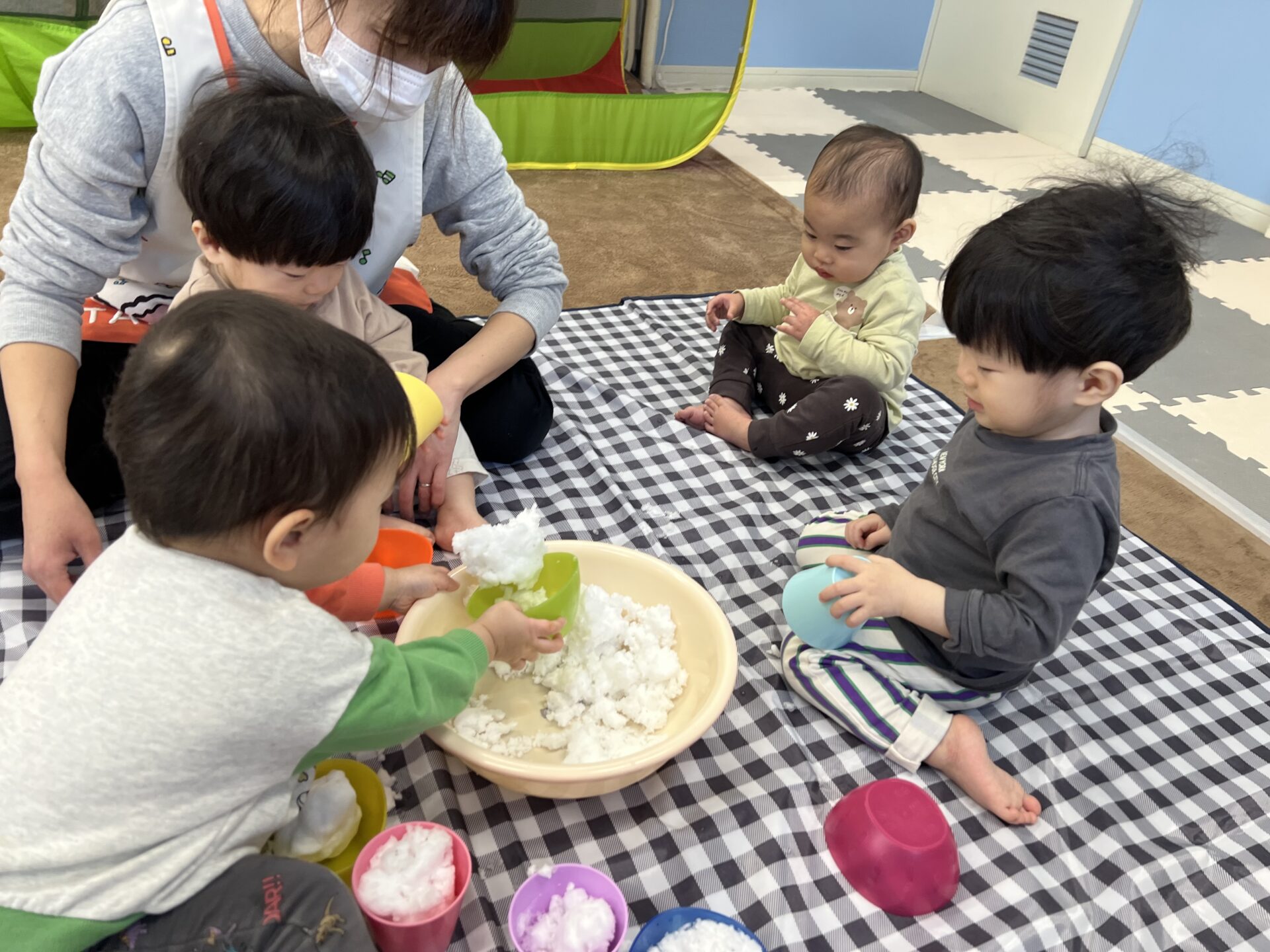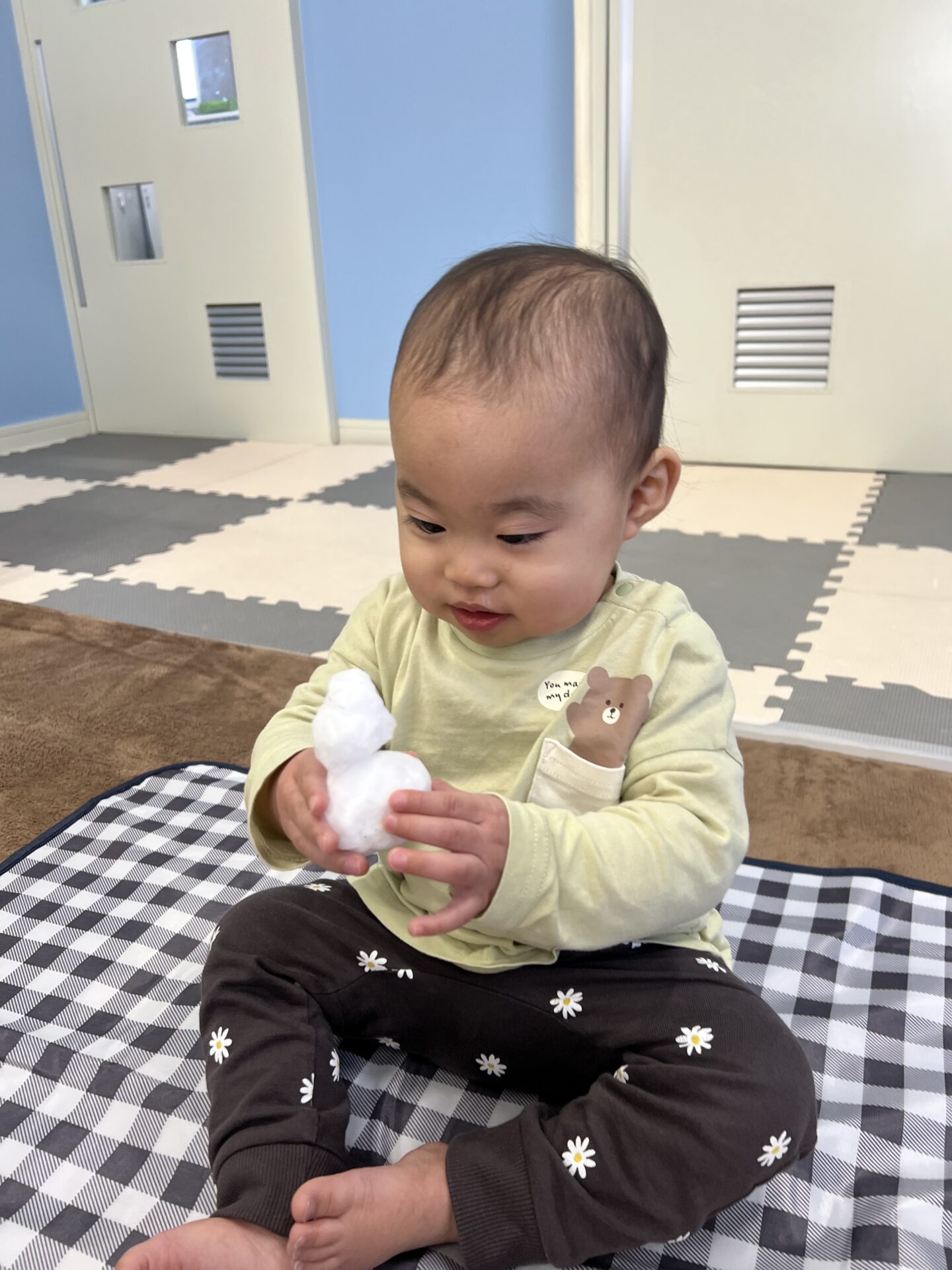 ふわふわ☺️あれ?!‥‥冷た〜い😳(おむすび組0歳児)