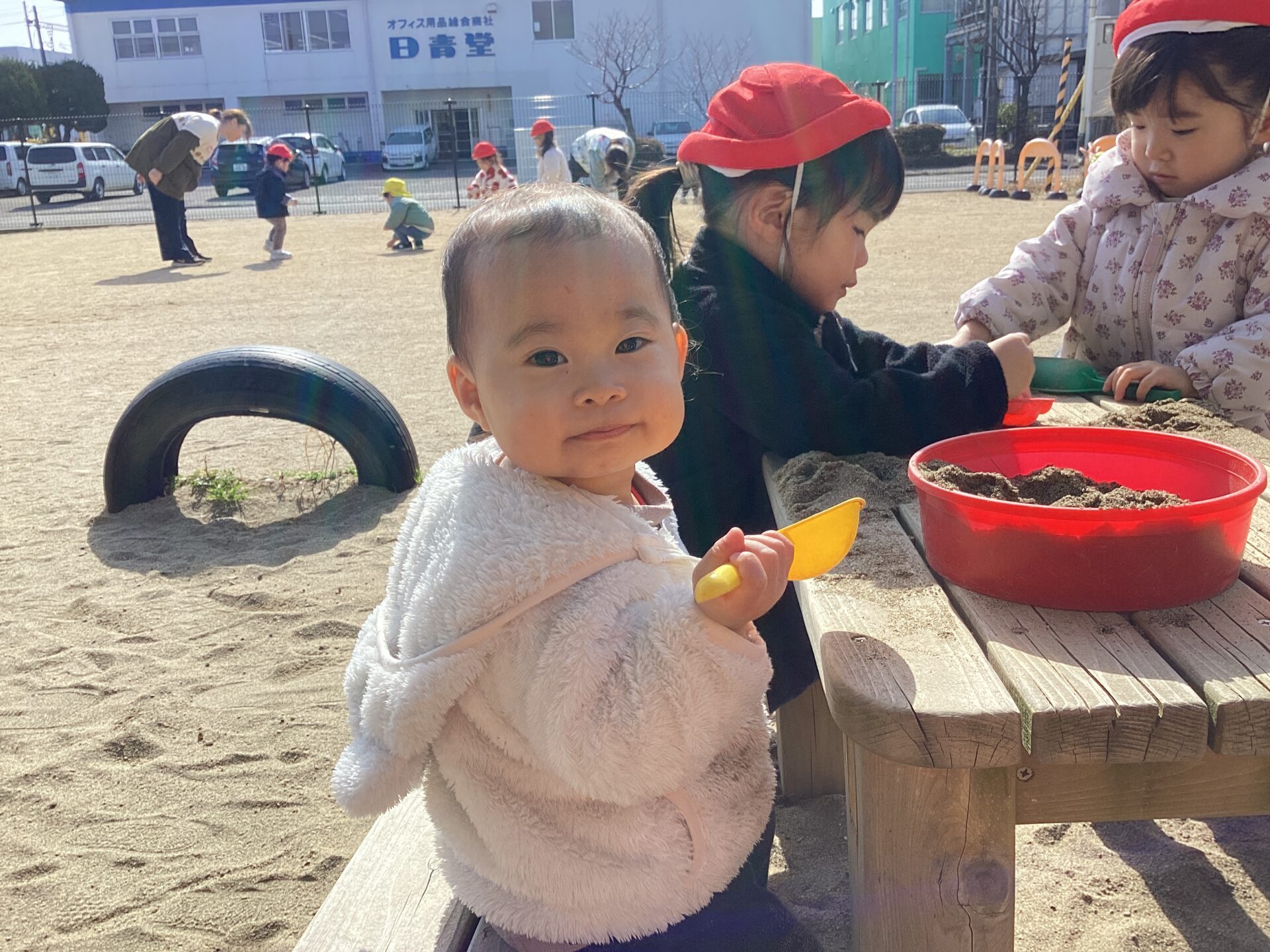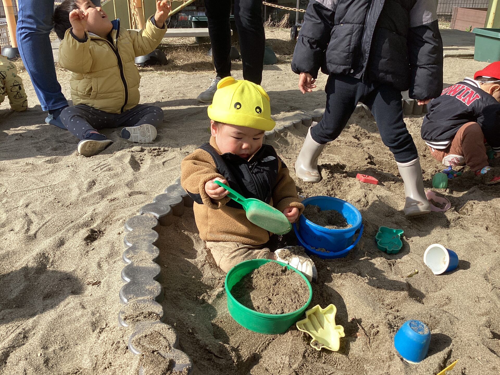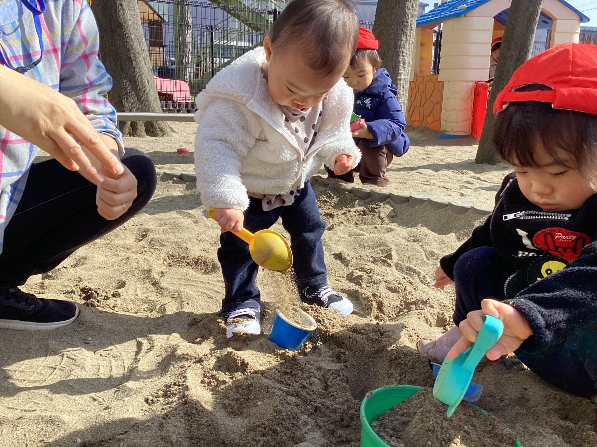 また、遊んでる姿をよーく見てみると、スコップを握れるようになったり、手首を返して砂をすくうことが出来るようになったりと成長した姿を見ることができ、嬉しくなった担任でありました🩷