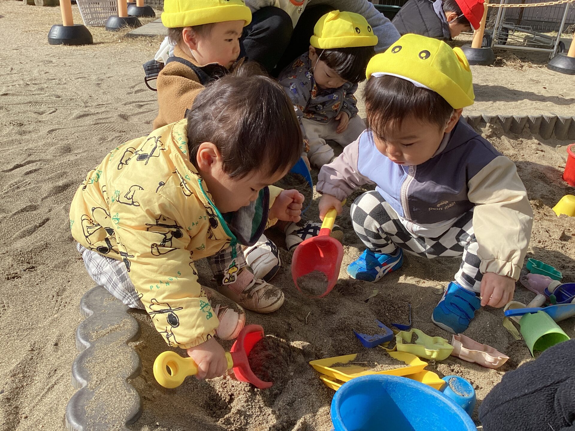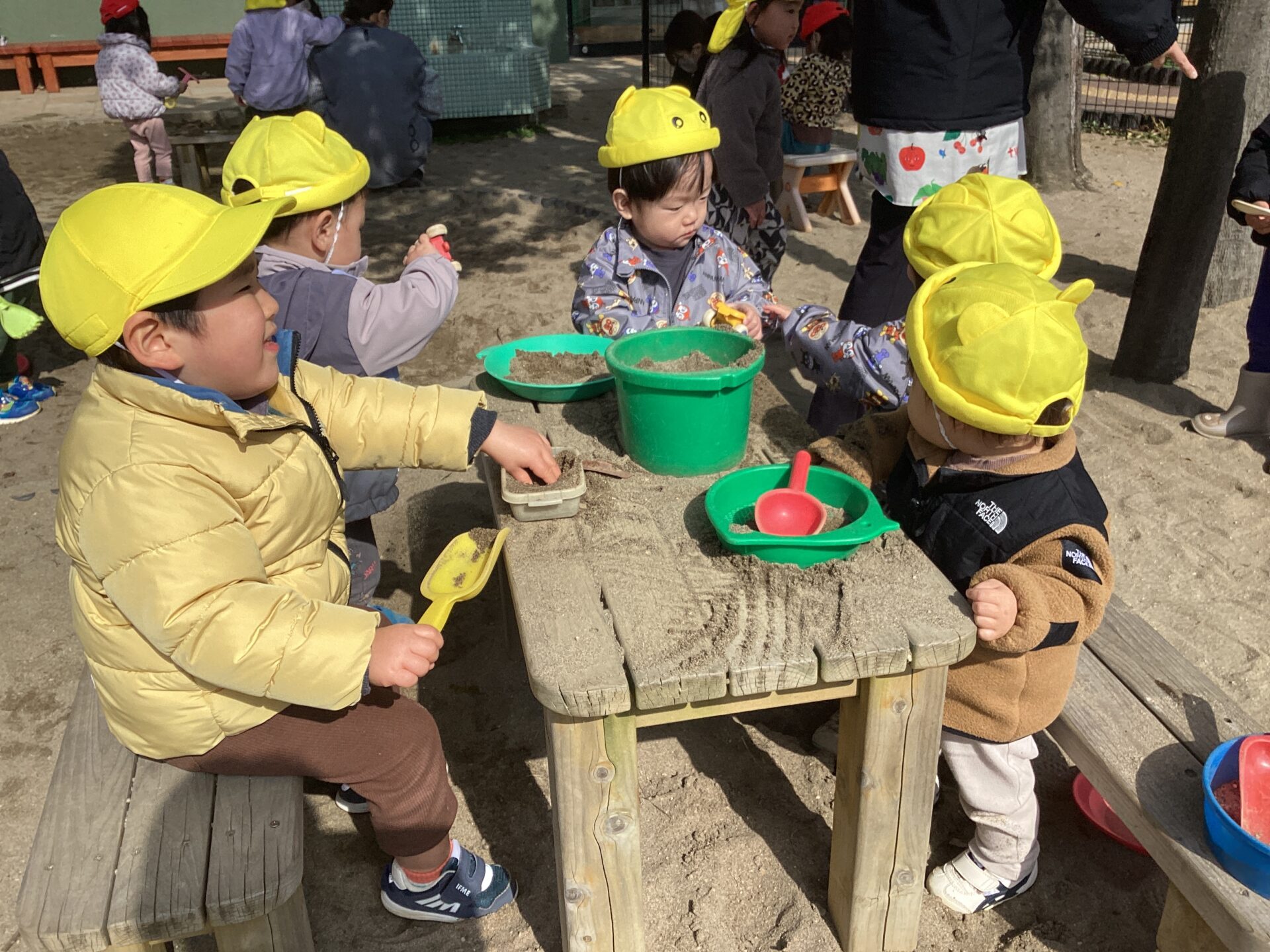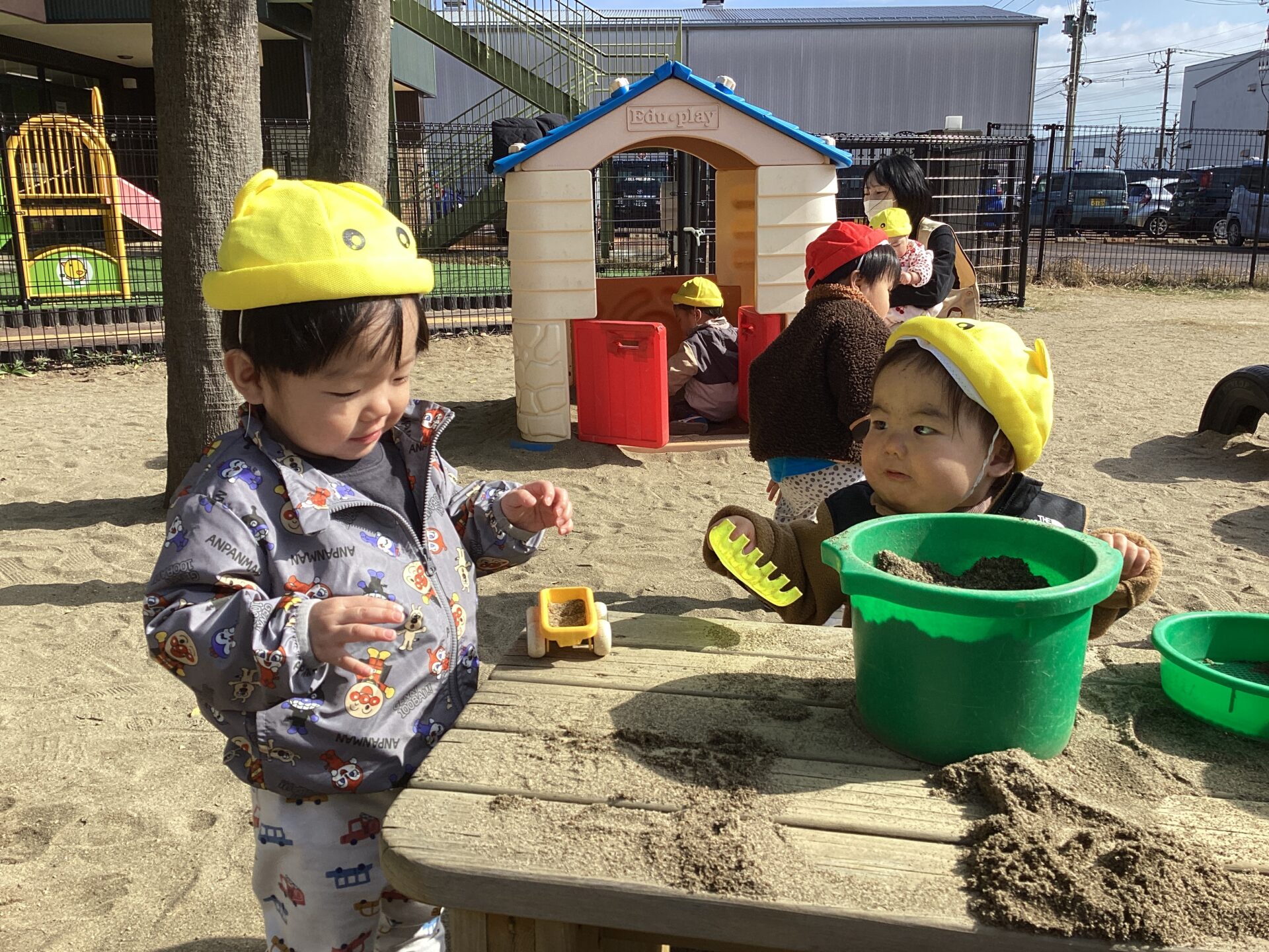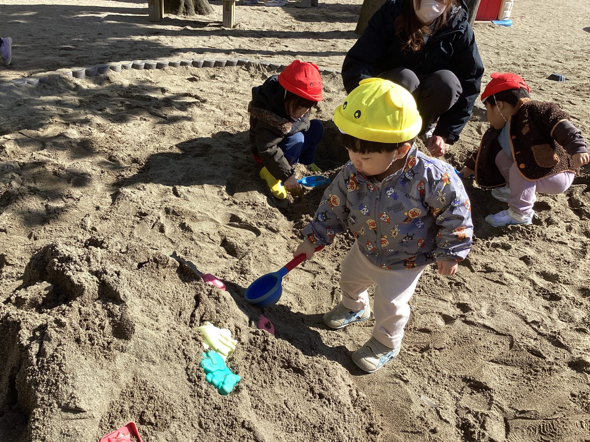 また、遊んでる姿をよーく見てみると、スコップを握れるようになったり、手首を返して砂をすくうことが出来るようになったりと成長した姿を見ることができ、嬉しくなった担任でありました🩷