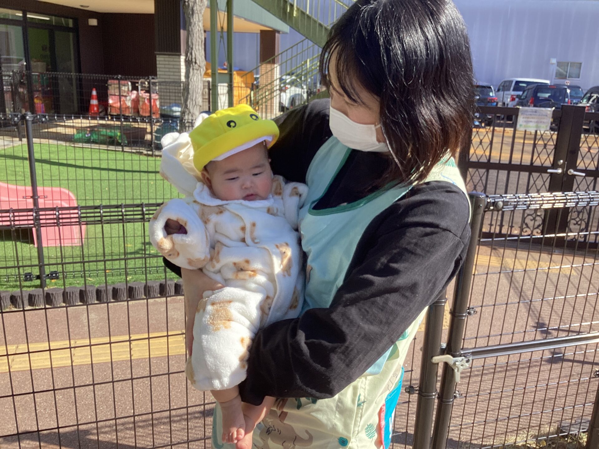 また、最近歩けるようになったり、立つことに興味が出てきたお友だちは保育者と手を繋いで歩いたり、一人でバランスを取って立つ姿が見られましたよ♬