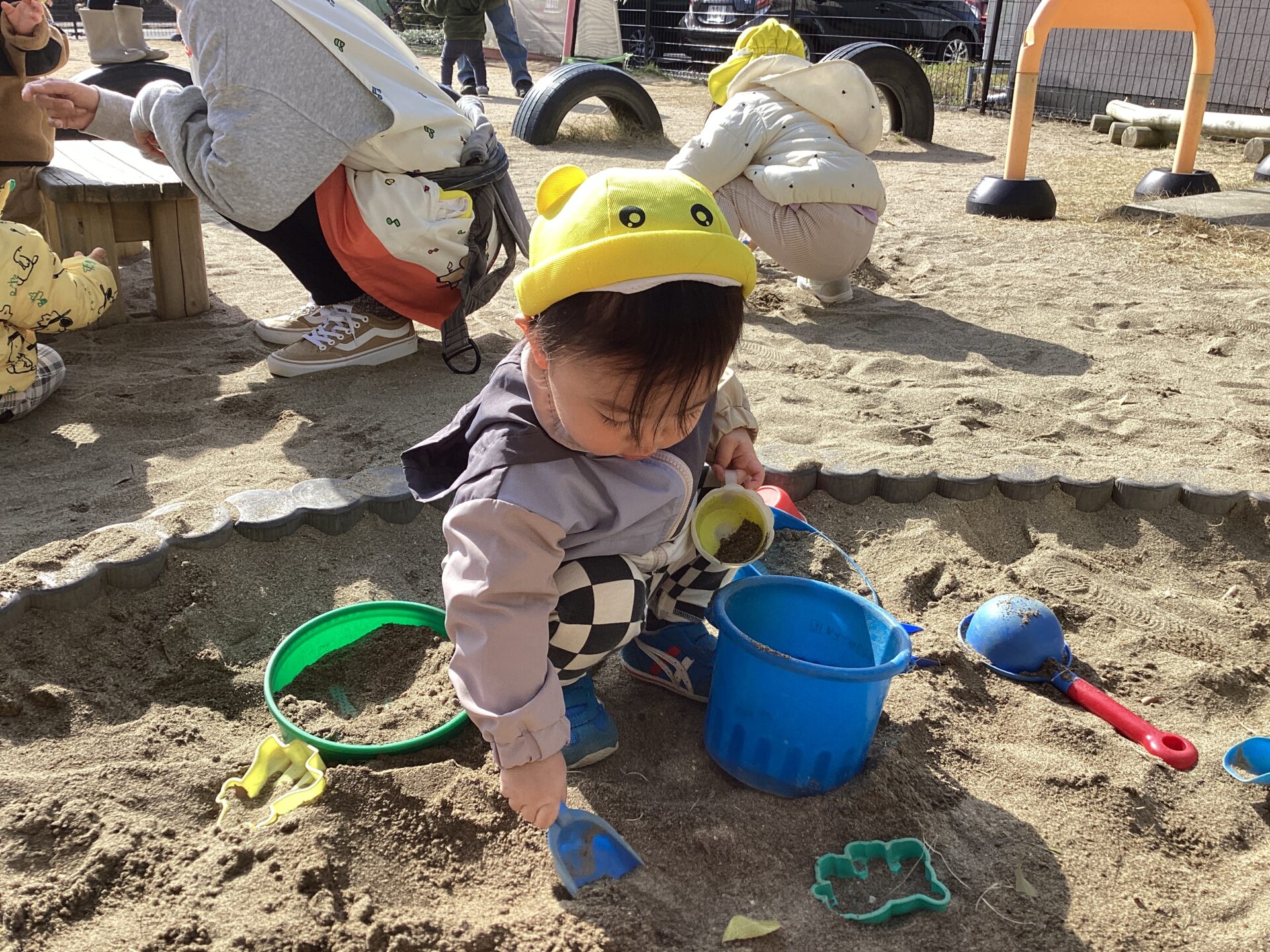 思い思いに気になる場所へ歩いて行ったり、玩具や砂に手を伸ばす姿が見られましたよ✨