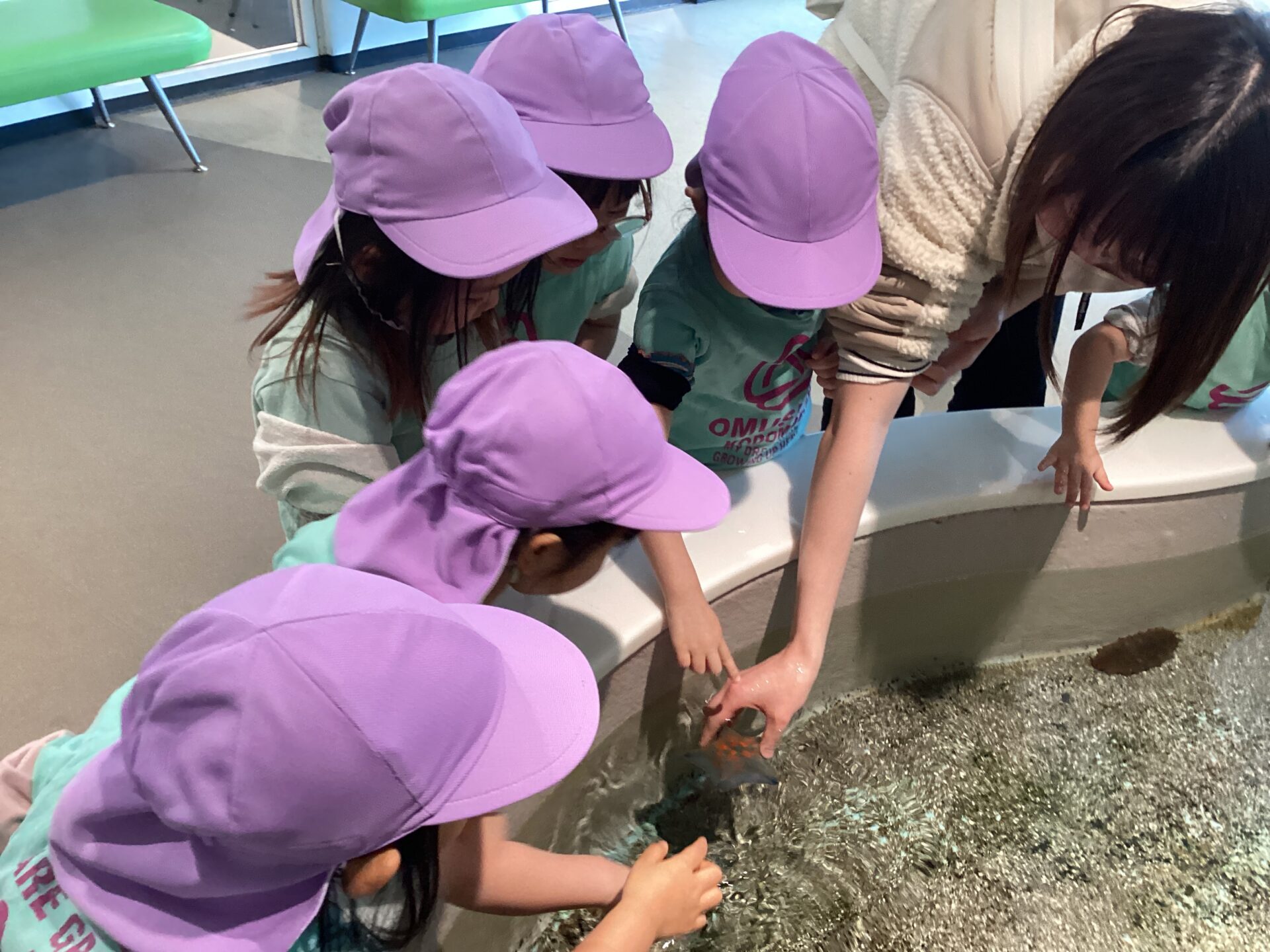 ウニを見て、「チクチクするのかなー」と言っていた子も実際に触ってみてチクチクしてないね。」やサメ🦈を触って、「ザラザラしてる」と色々な事を感じたようです😊