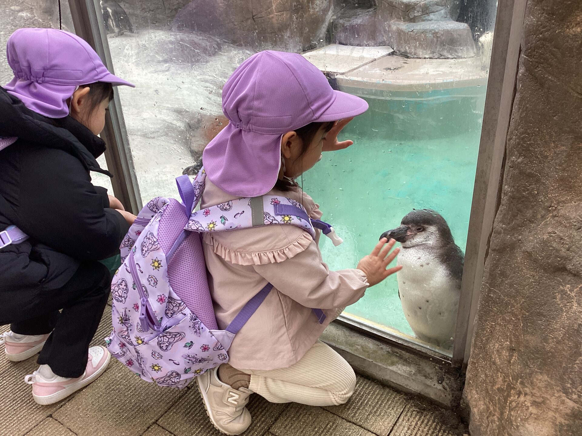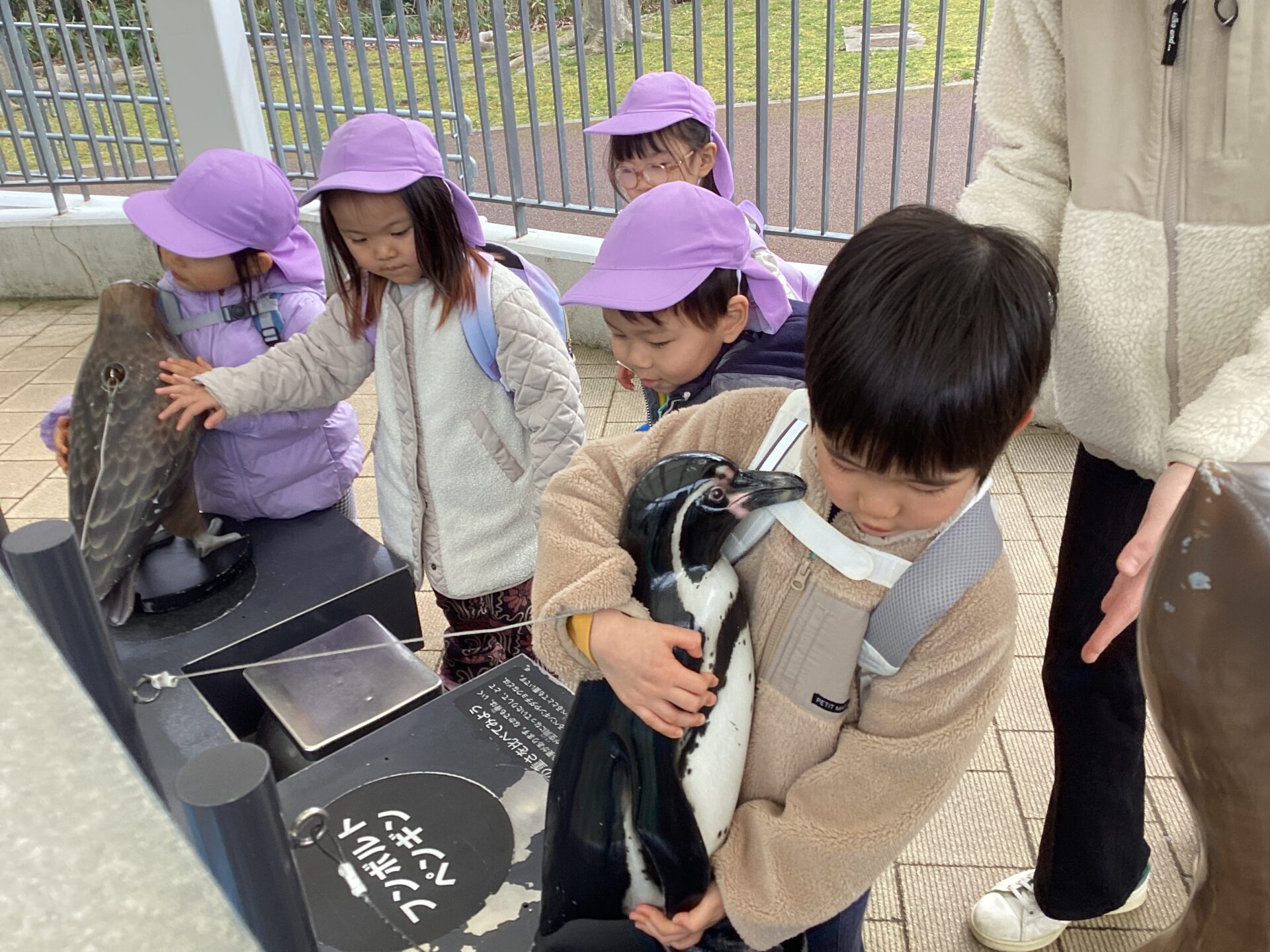お弁当を食べた後には、魚を触ってみたりペンギンを見に行き楽しみました😊