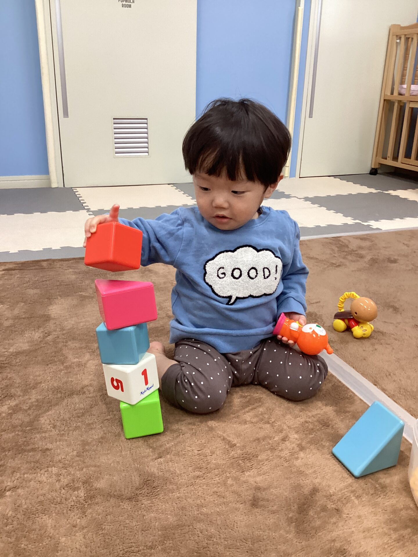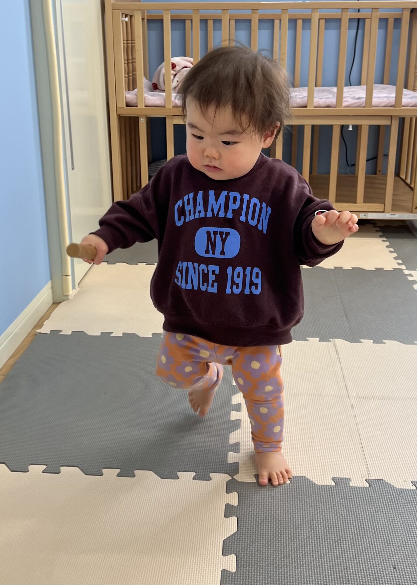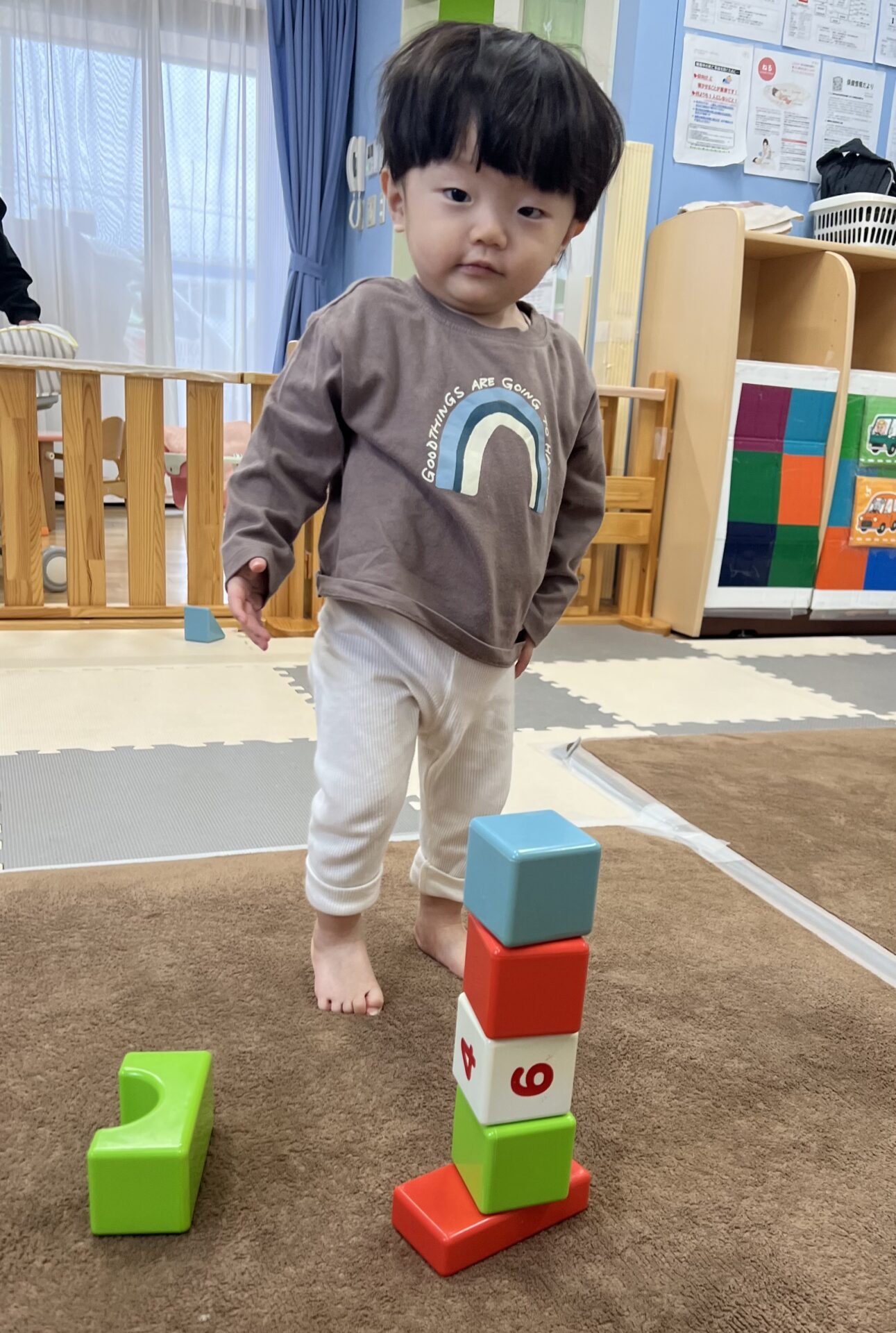 ハイハイで過ごしていたお友だちが一人で立ちあがることが出来ました。