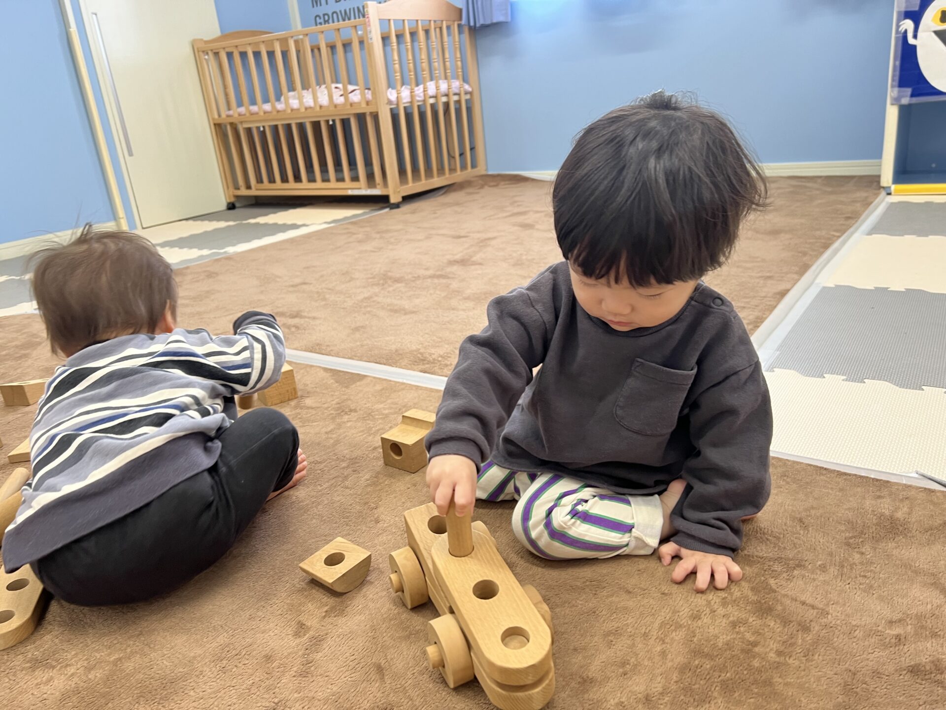 入園した頃はほとんどのお友だちがハイハイやずり這いで移動していましたね。