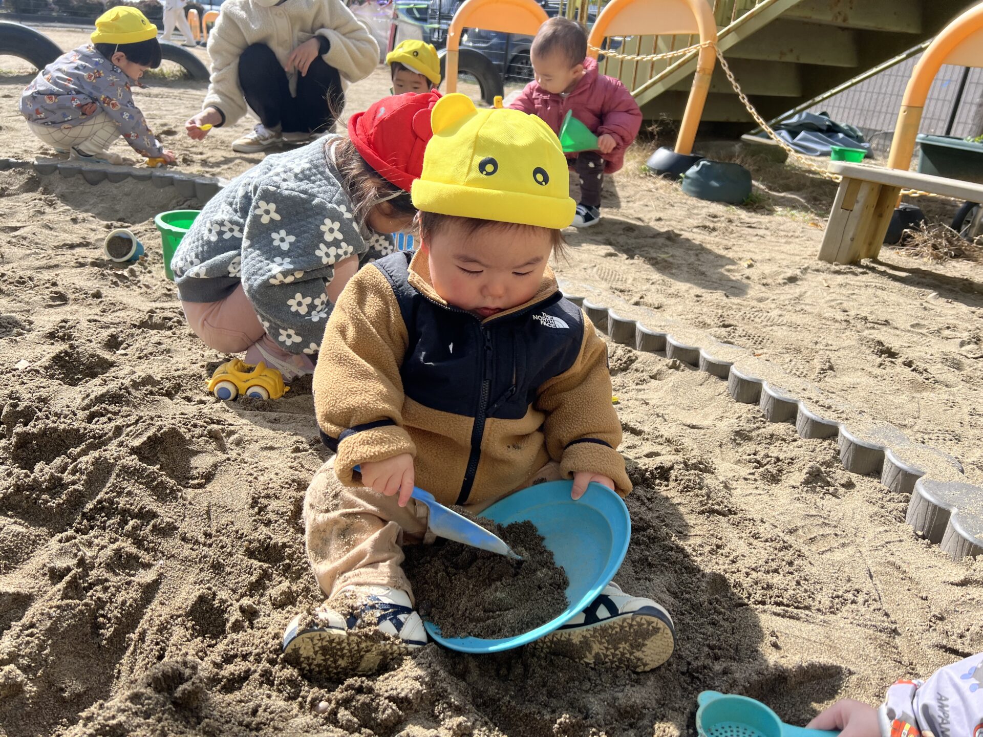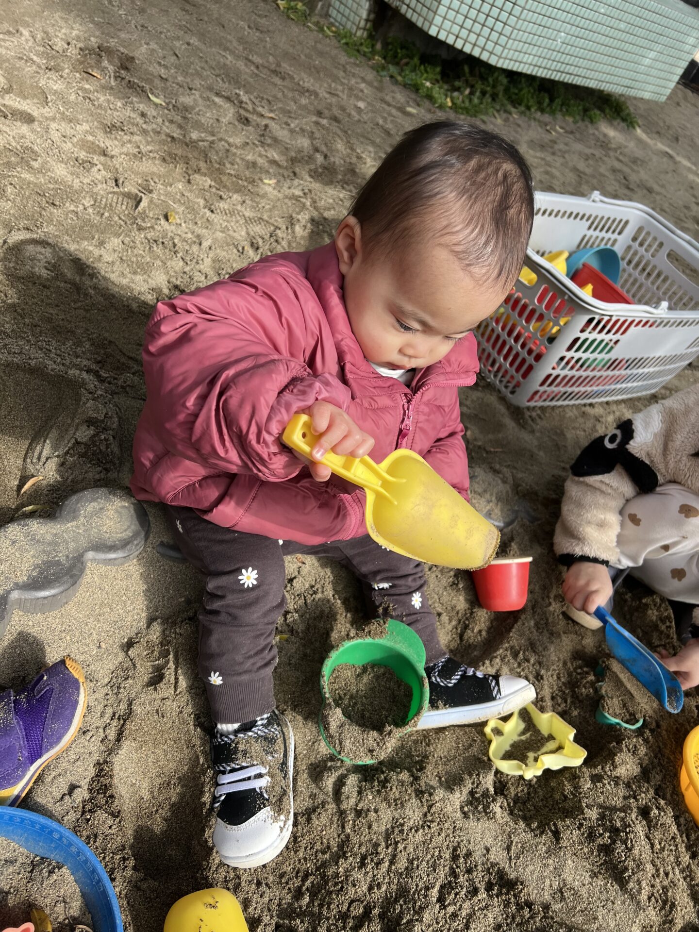 外遊びではスコップを握って砂遊びが楽しめるようになりました