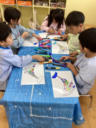 くじらゲルニカ(アート活動)を行いました! (そらぐみ4歳児、つきぐみ5歳児)