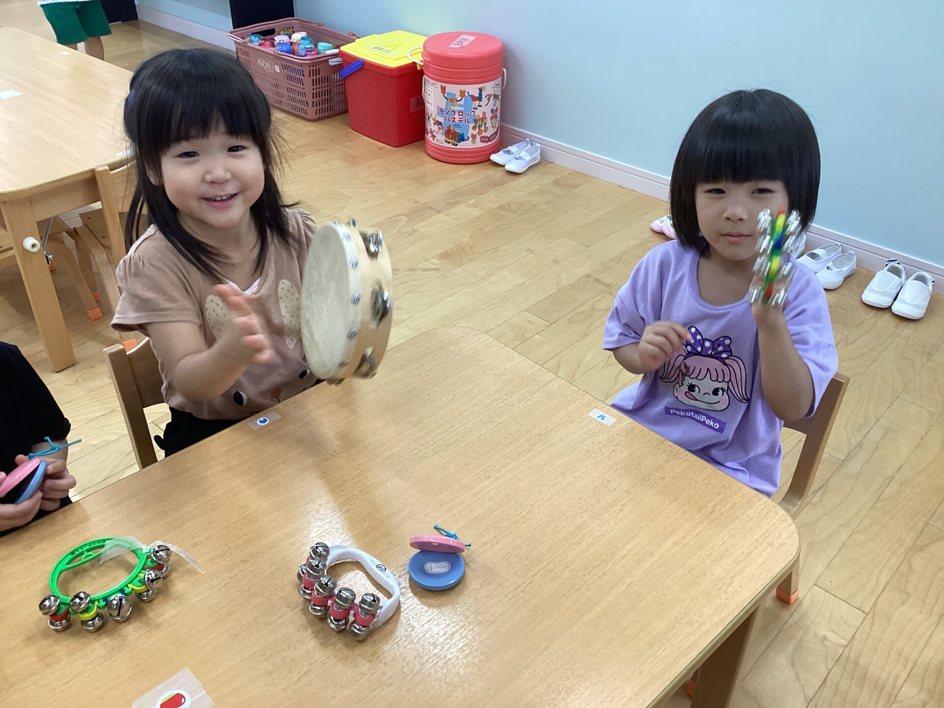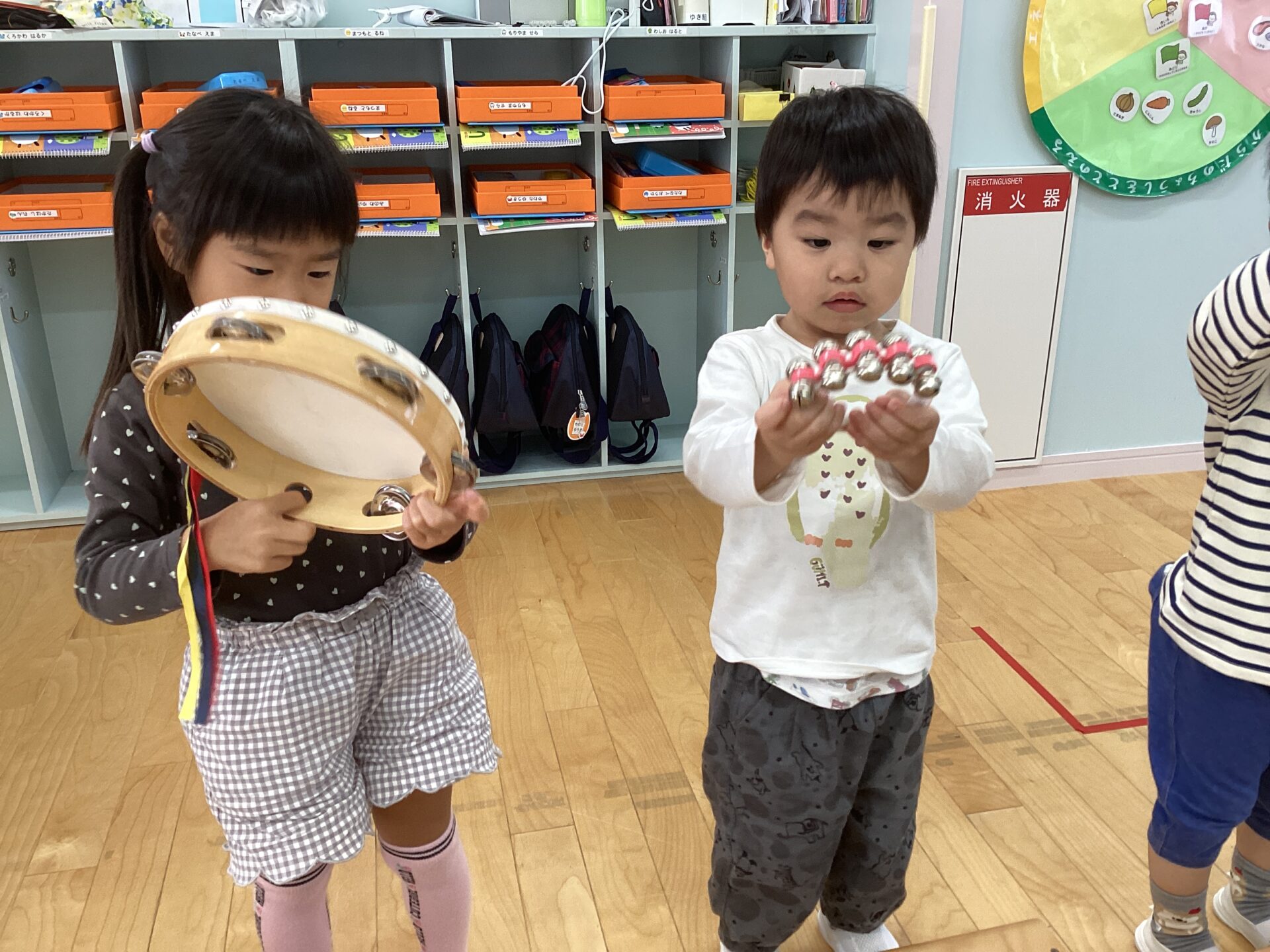 先月よりゆきぐみでは、タンバリン、鈴、カスタネットを使い、楽器遊びを楽しんでいます♬