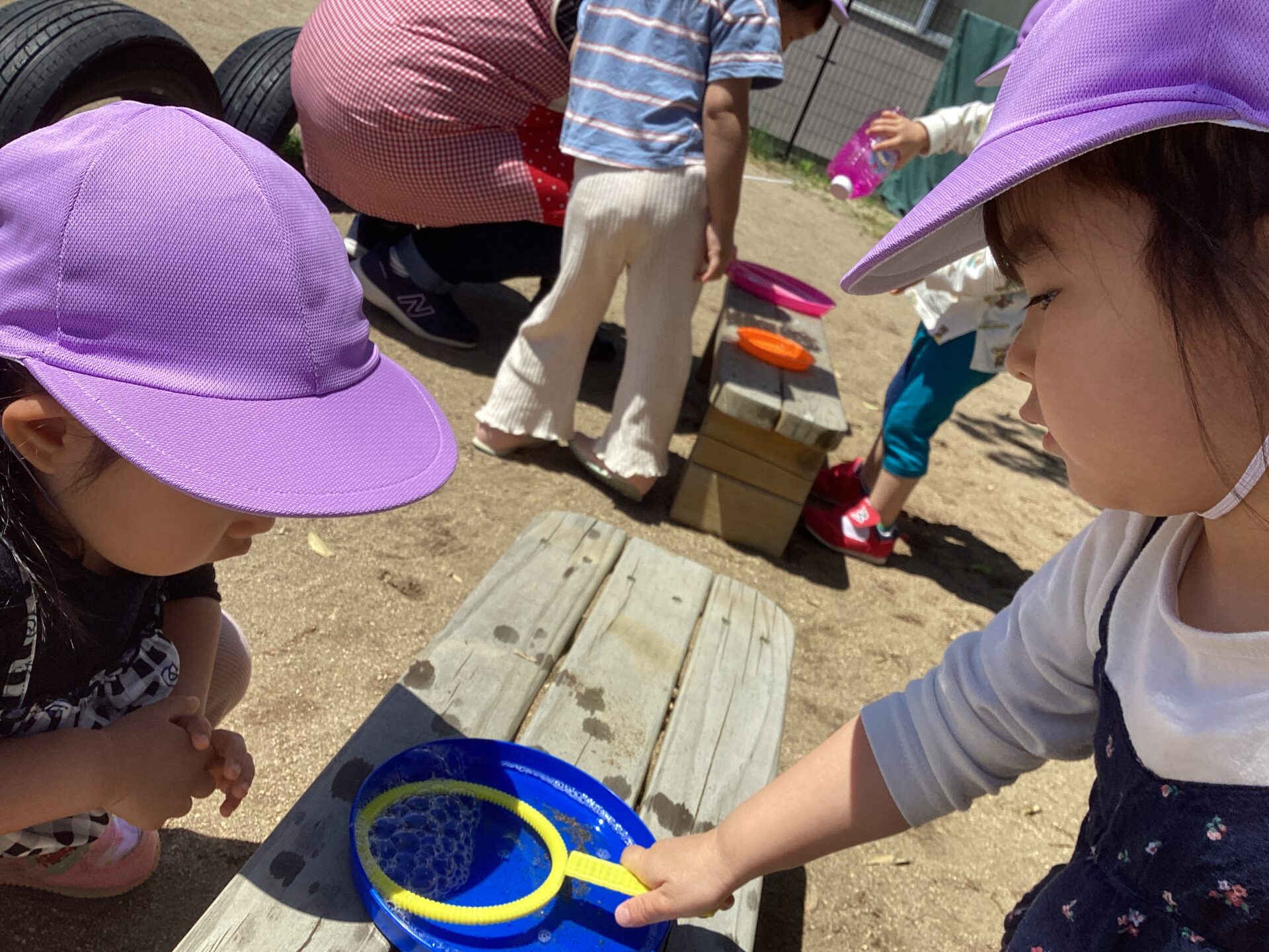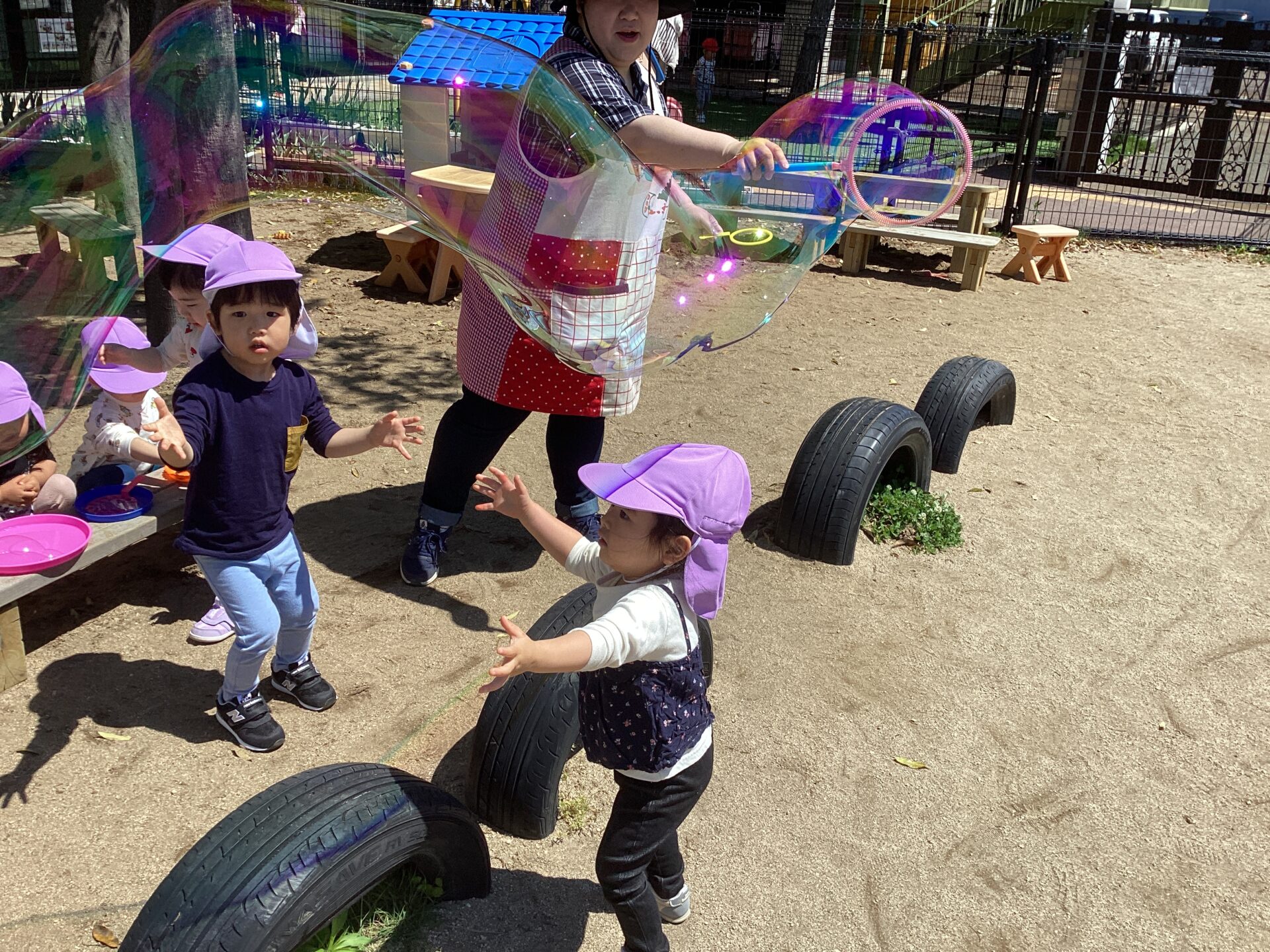 天気の良い日にお外でしゃぼん玉をしています♪