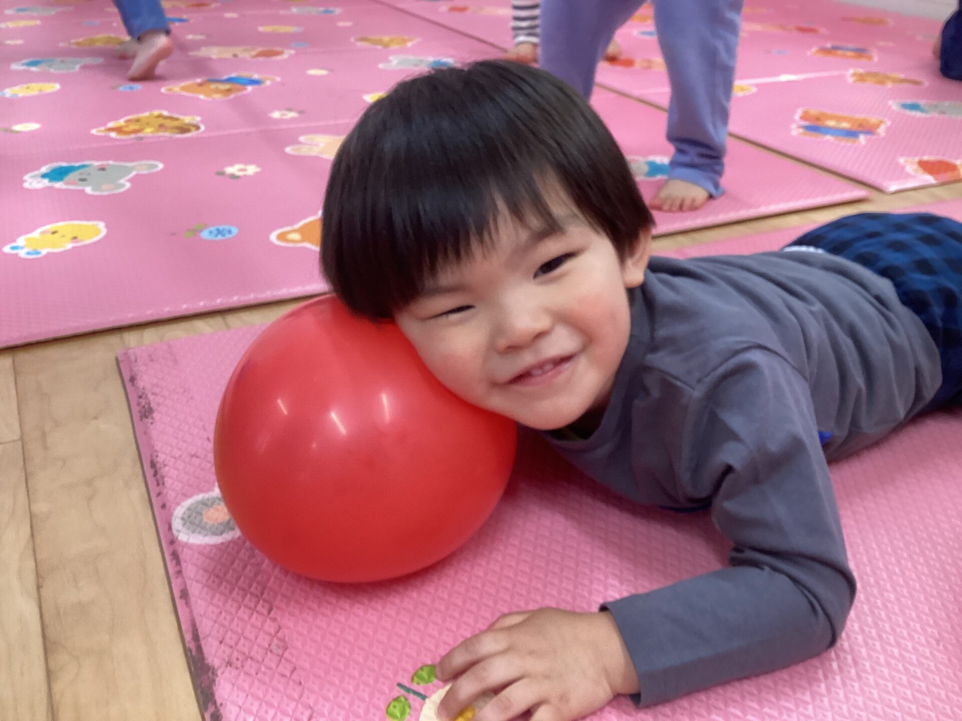 ぽよんぽよーん♪と風船の感触を楽しんでいました😊