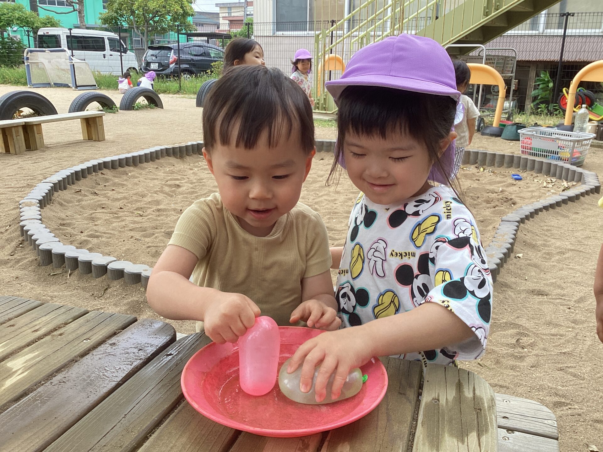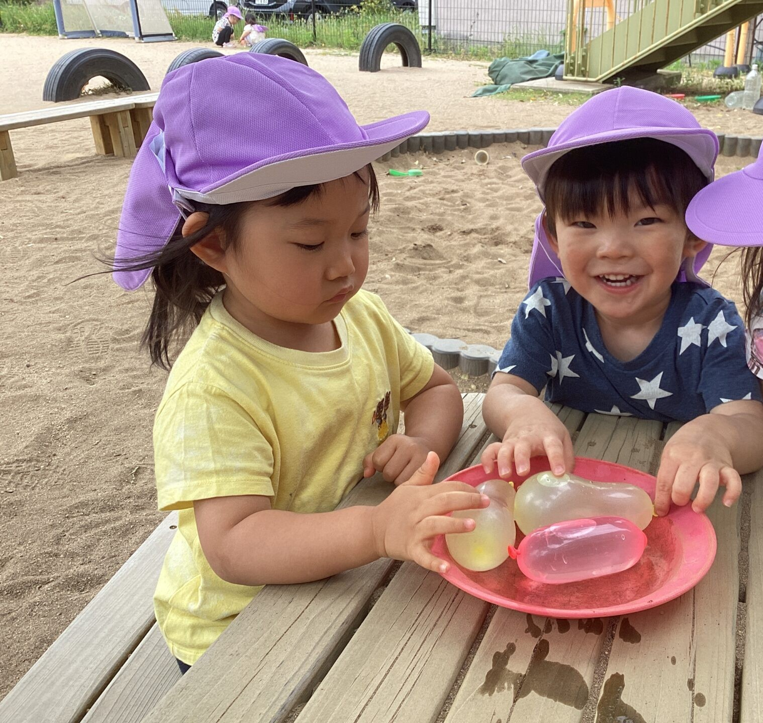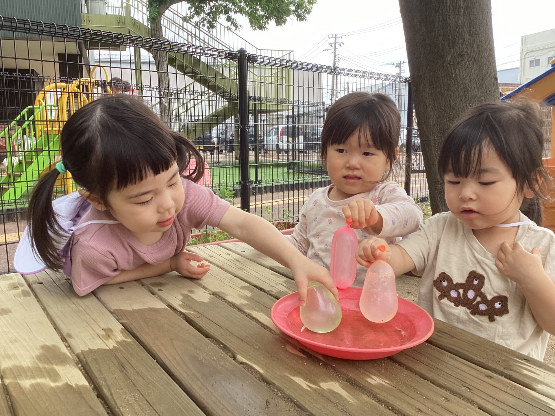 お外で水風船もしてみました☆